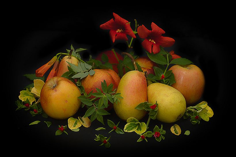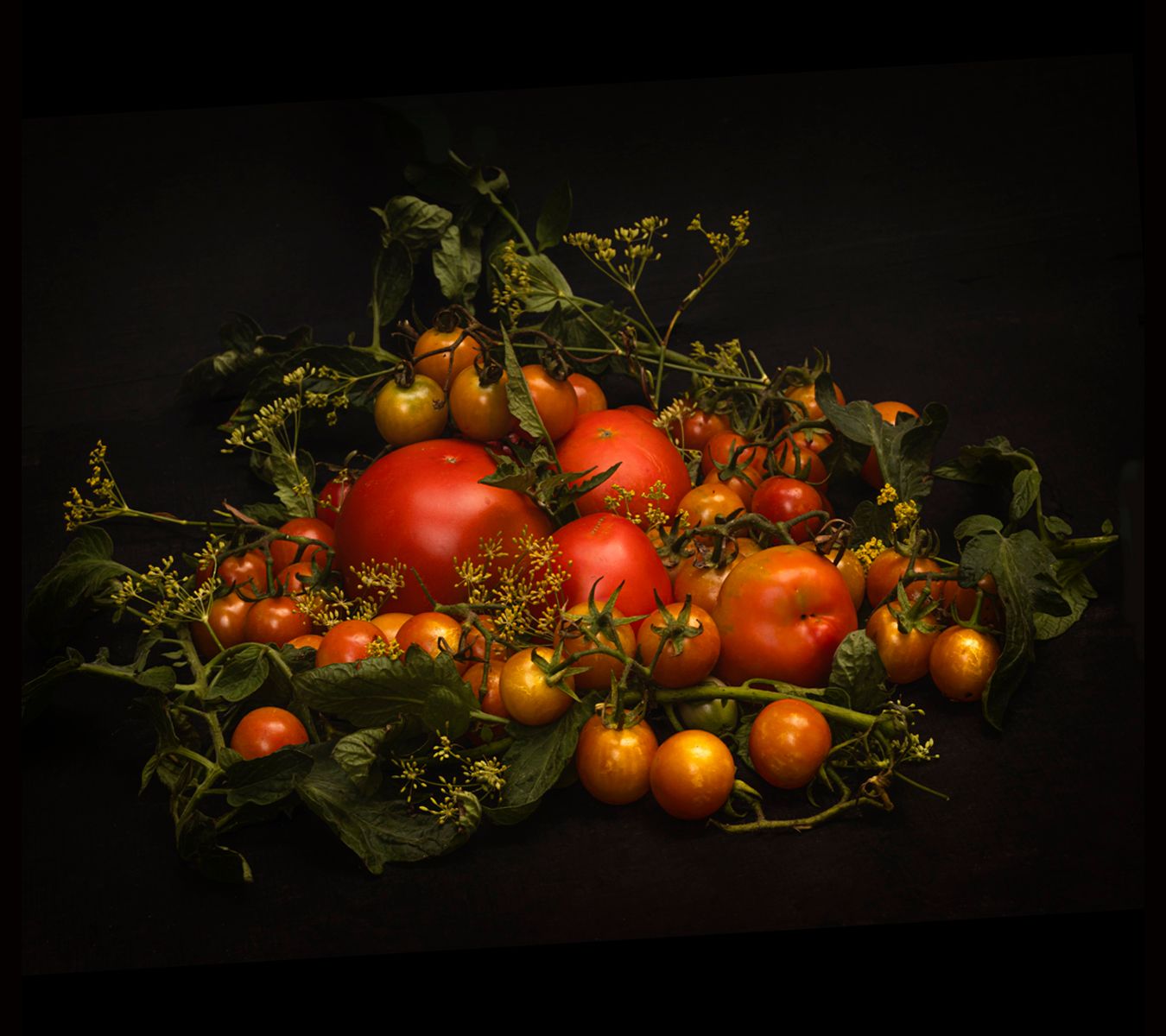 This series is the result of the inspiration I received from your stimulating course, Daniela, and the produce from my dear neighbor's garden. Every summer, when I'm at my vacation home, he gives me some of his varied harvest. That's how I created these still lifes, without any great technical resources: only with the natural light of the shady patio, a tripod, and my Canon RP camera with a 24-105 lens. The retouching was done in Adobe Photoshop. I used an analogous, monochromatic color scheme, with some complementary touches.