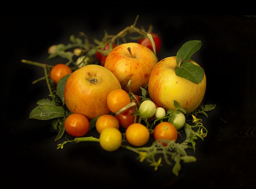 This series results from the inspiration provided by your stimulating course, Daniela, and the produce from my dear neighbor's garden. He gives me some of his varied harvests when I am at home on vacation every summer. That's how I created these still lifes, without significant technical resources: only with the natural light of the shady courtyard, a tripod, and my Canon RP camera with 24-105 lens. The retouching was done with Adobe Photoshop. I used an analog and monochromatic color range with some complementary touches.