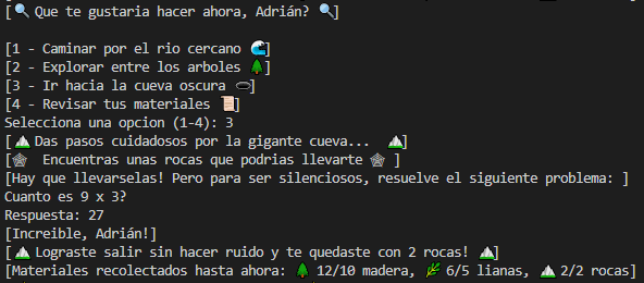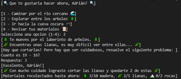 Todo esto fue hecho a base de utilizar el comando 'print' y utilizar emojis de manera estrategica.