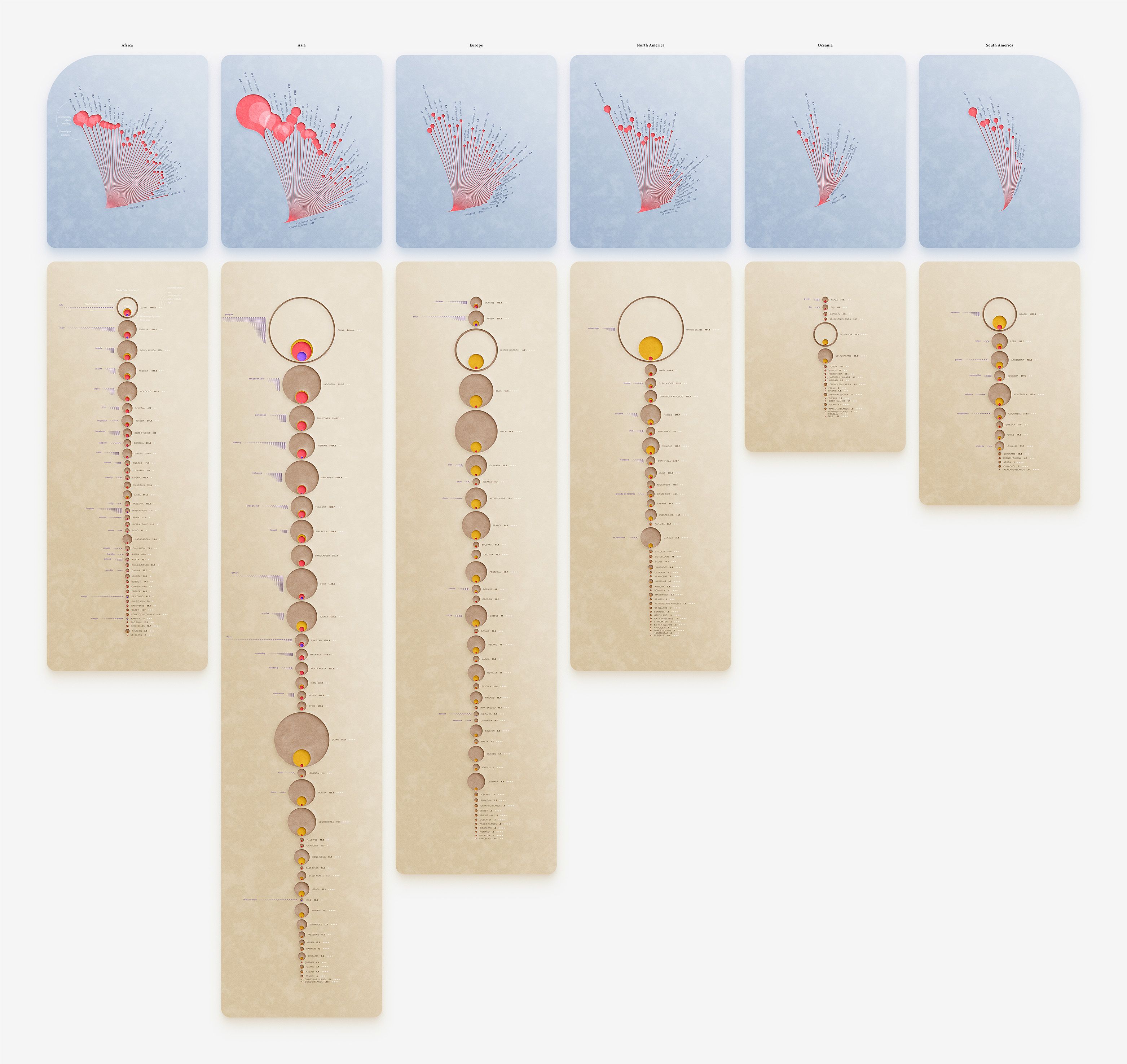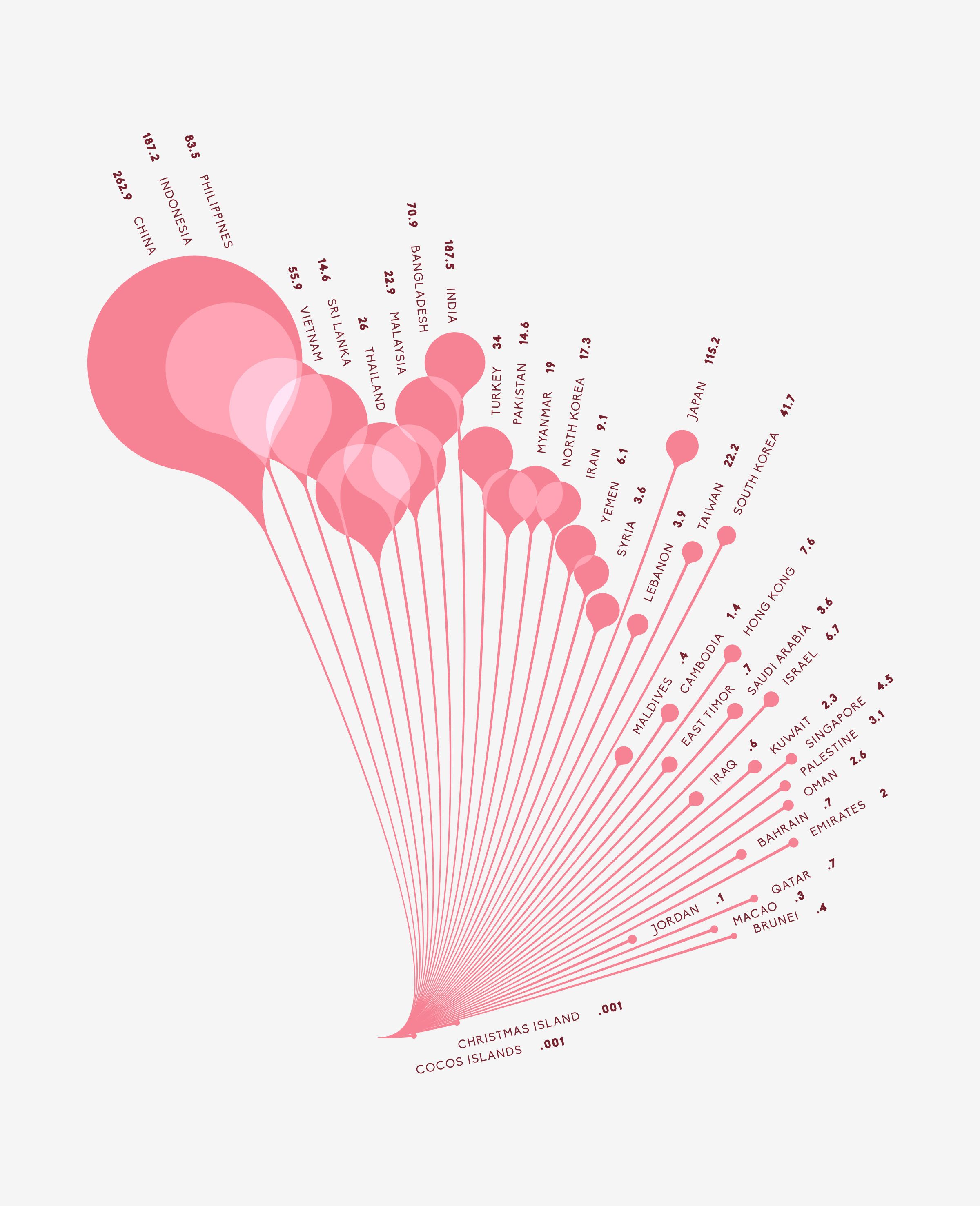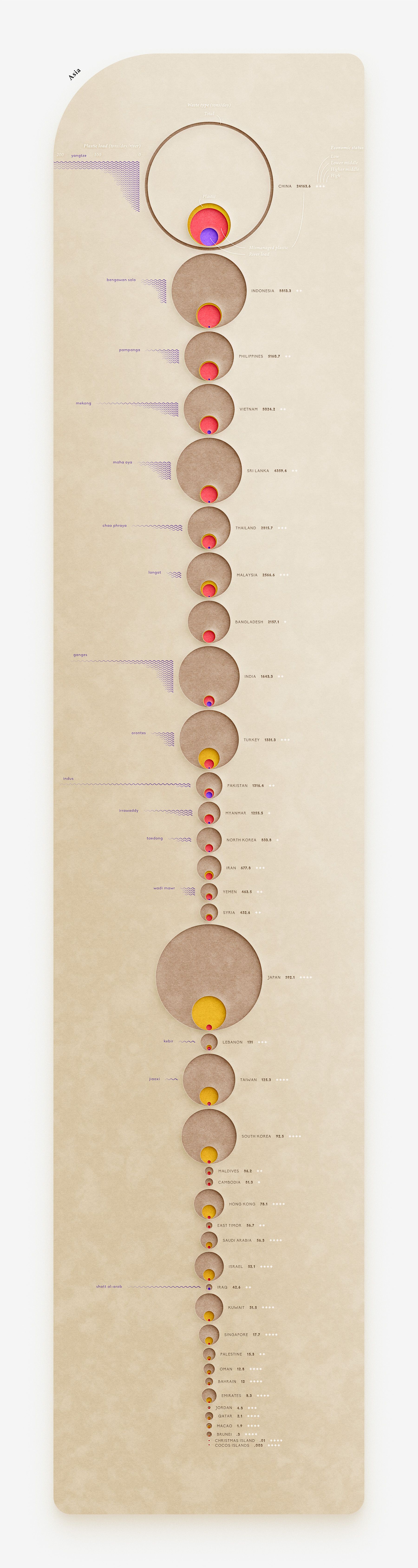 The following infographics represent trends in plastic pollution by Asian coastal populations, in 2010.