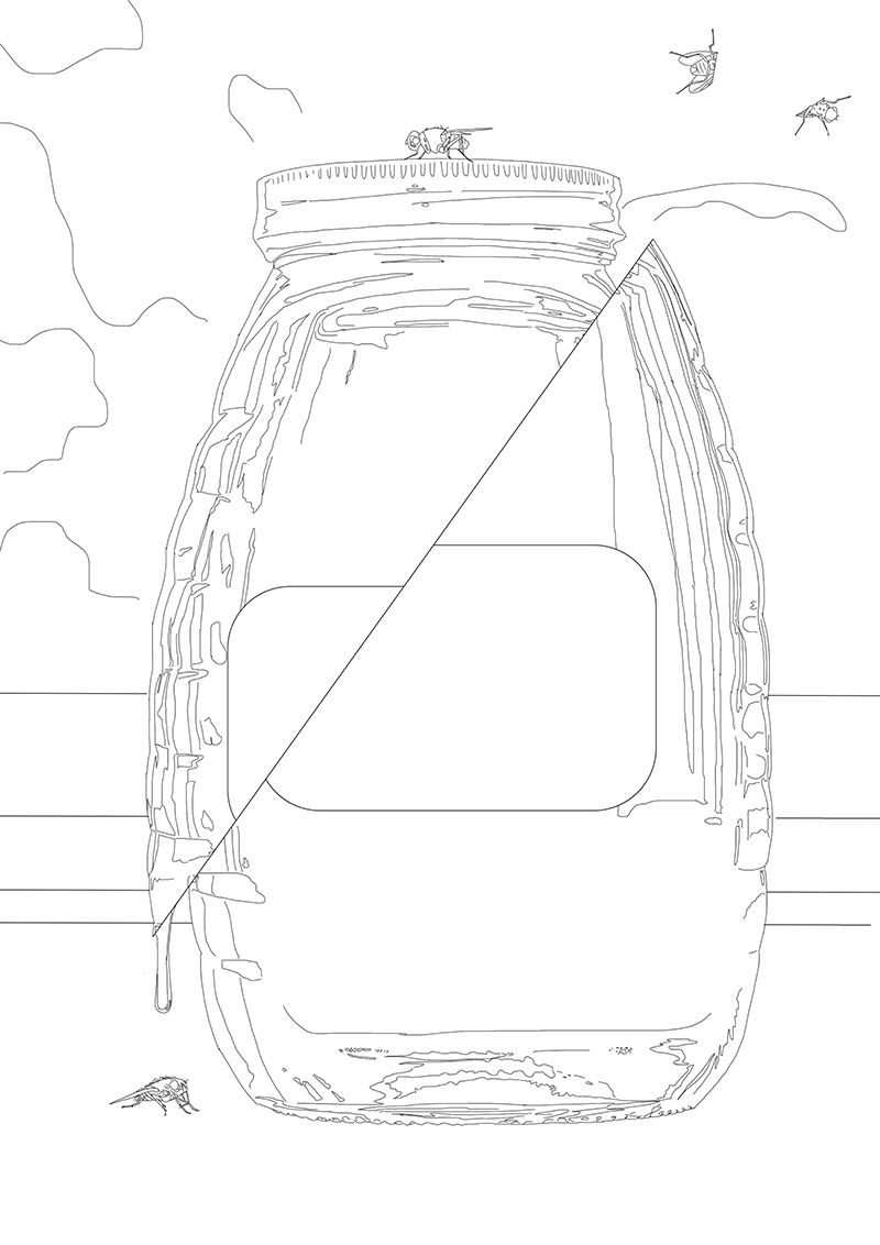 Si os fijáis en el dibujo, hay una mosca partida por la mitad.....al final le perdoné la vida y no la pinté :)