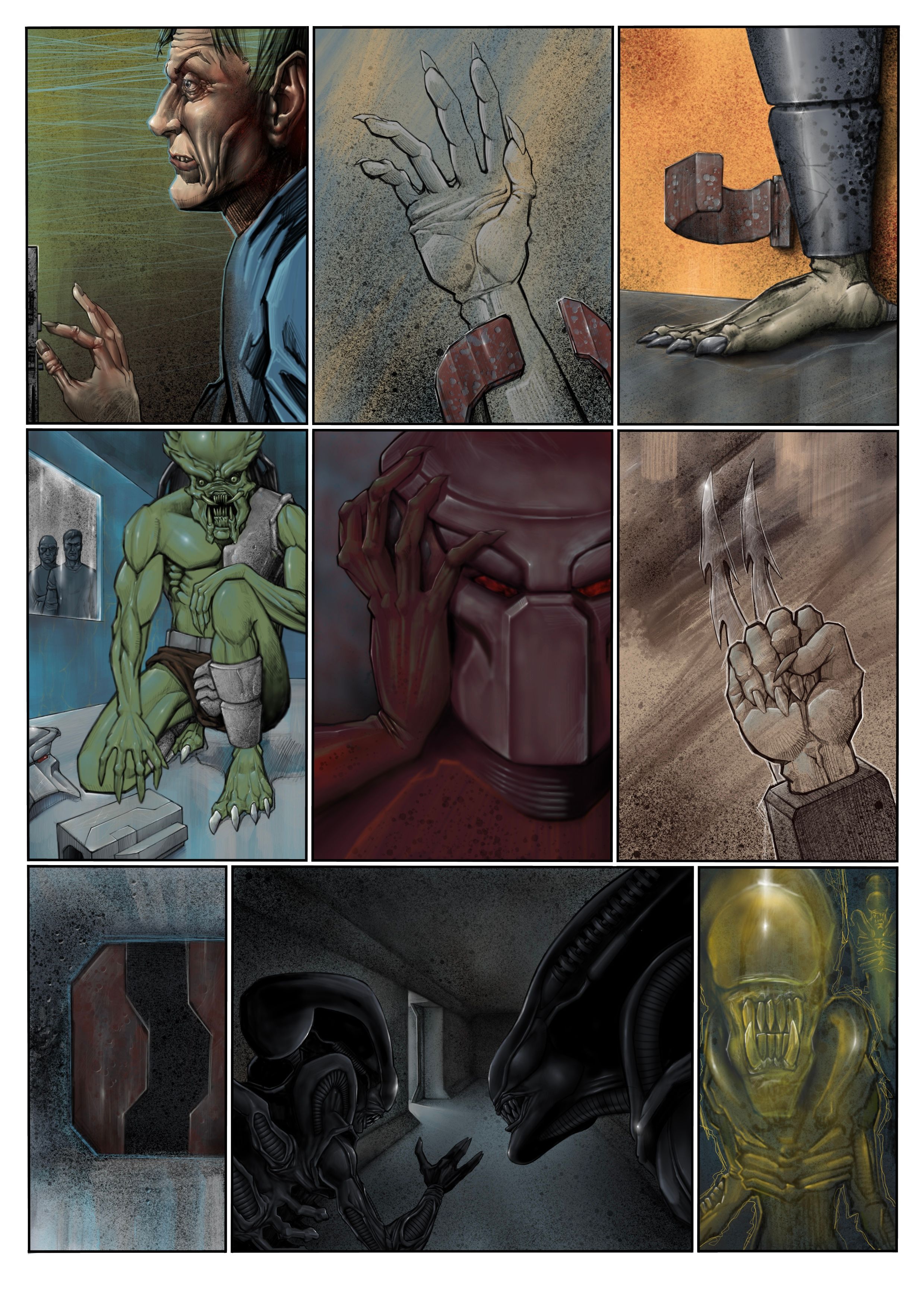 Jedna ze stron mojego komiksu „Alien vs Predator: Cicha Zemsta”.