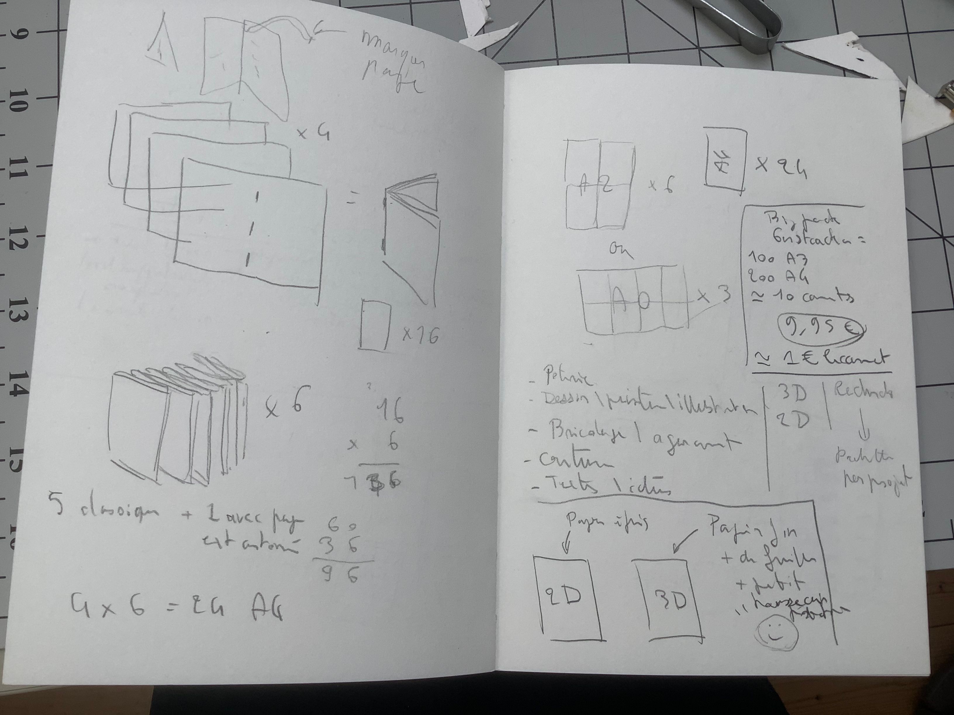 Voici un extrait de mes réflexion à propos de mon carnet : combien de feuilles, quel format, pour quel usage etc…