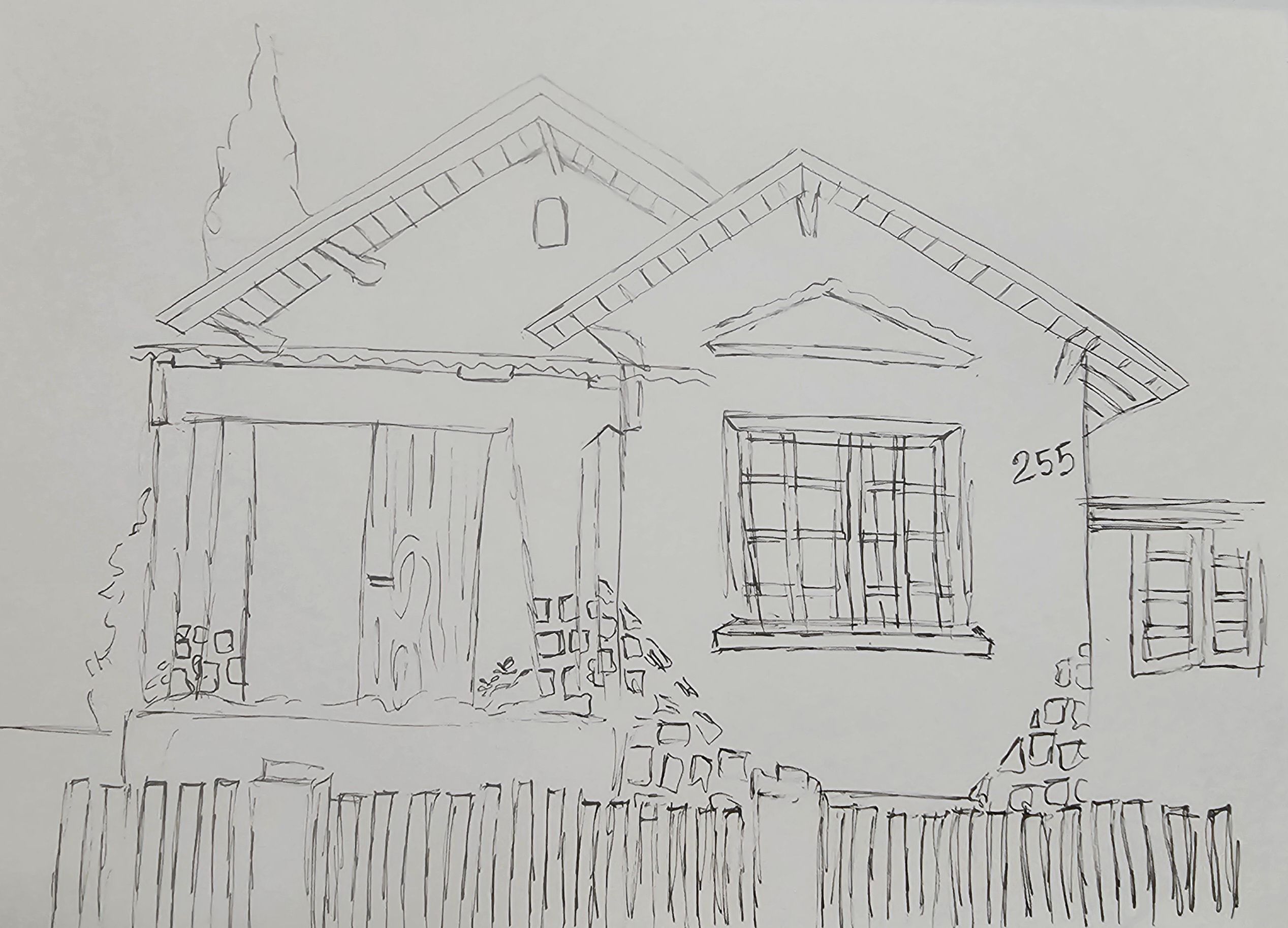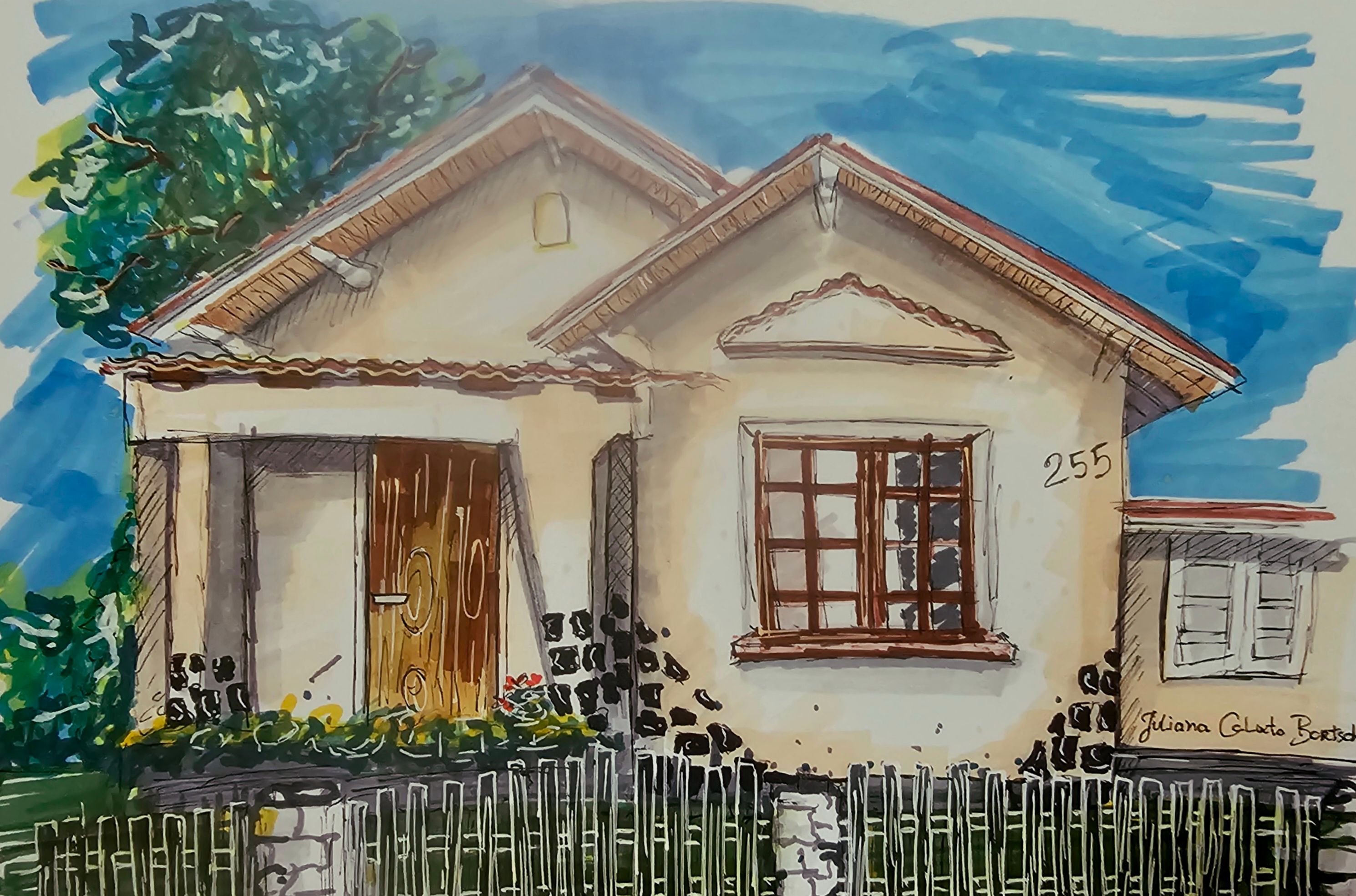 A minha criação se deu a partir de uma fotografia salva na galeria do meu celular de uma casa que remete a memórias afetivas de infância.