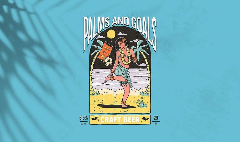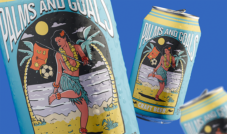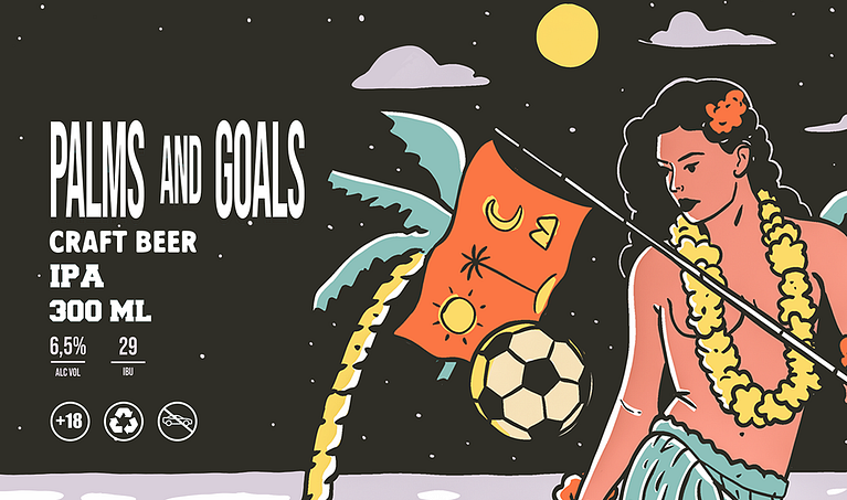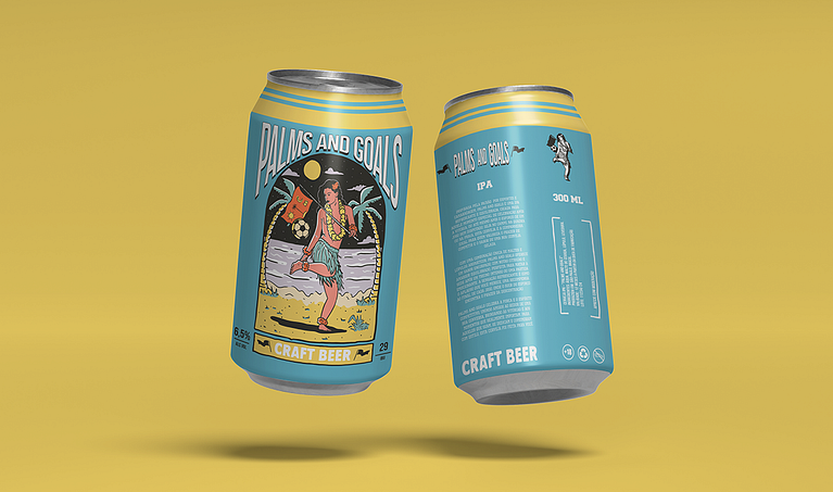 Neste projeto o desafio foi ilustrar uma embalagem para a cerveja Palms and Goals, focada em pessoas que apreciam uma cerveja gelada enquanto acompanham transmissões esportivas ou buscam se refrescar após uma atividade física.