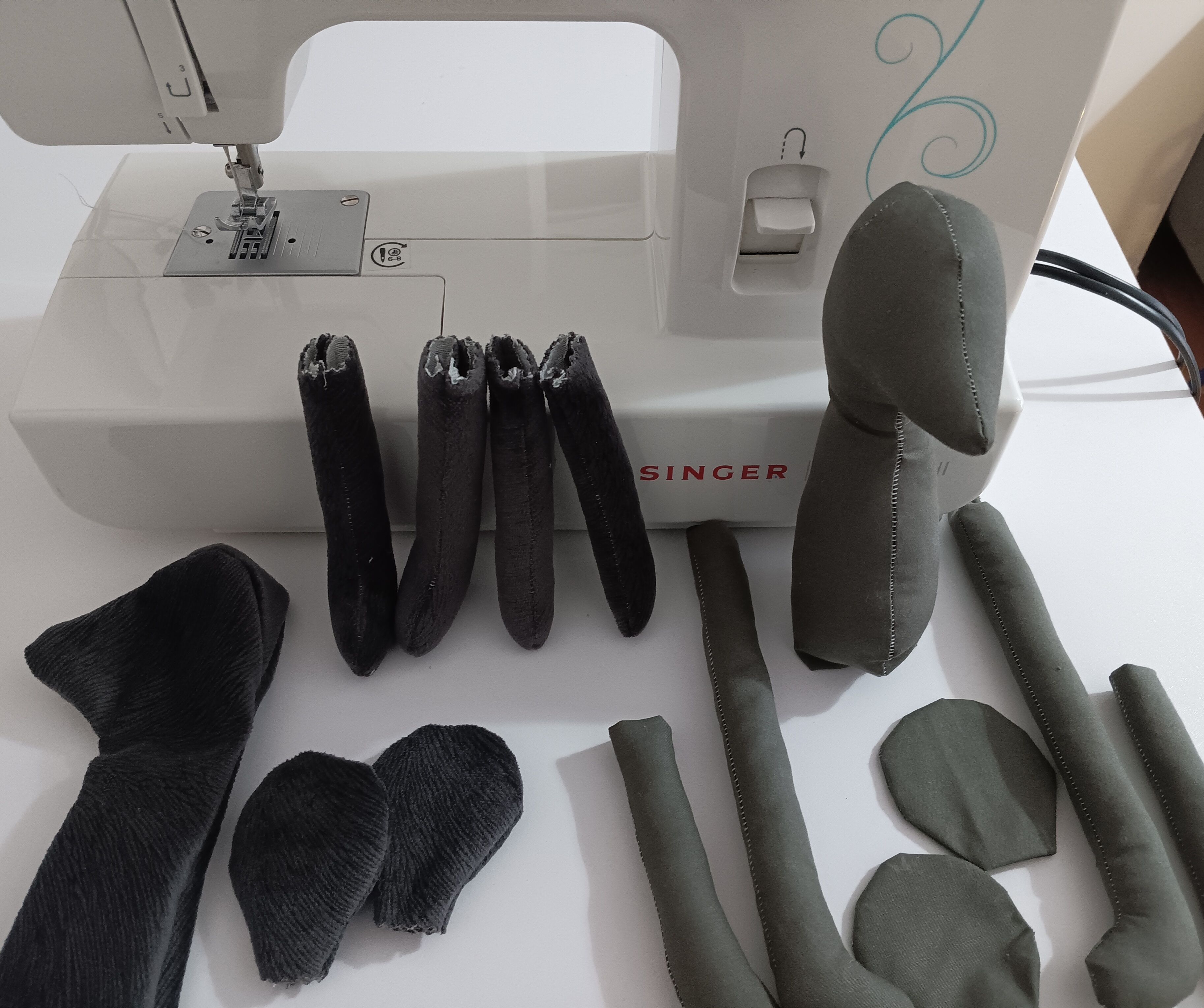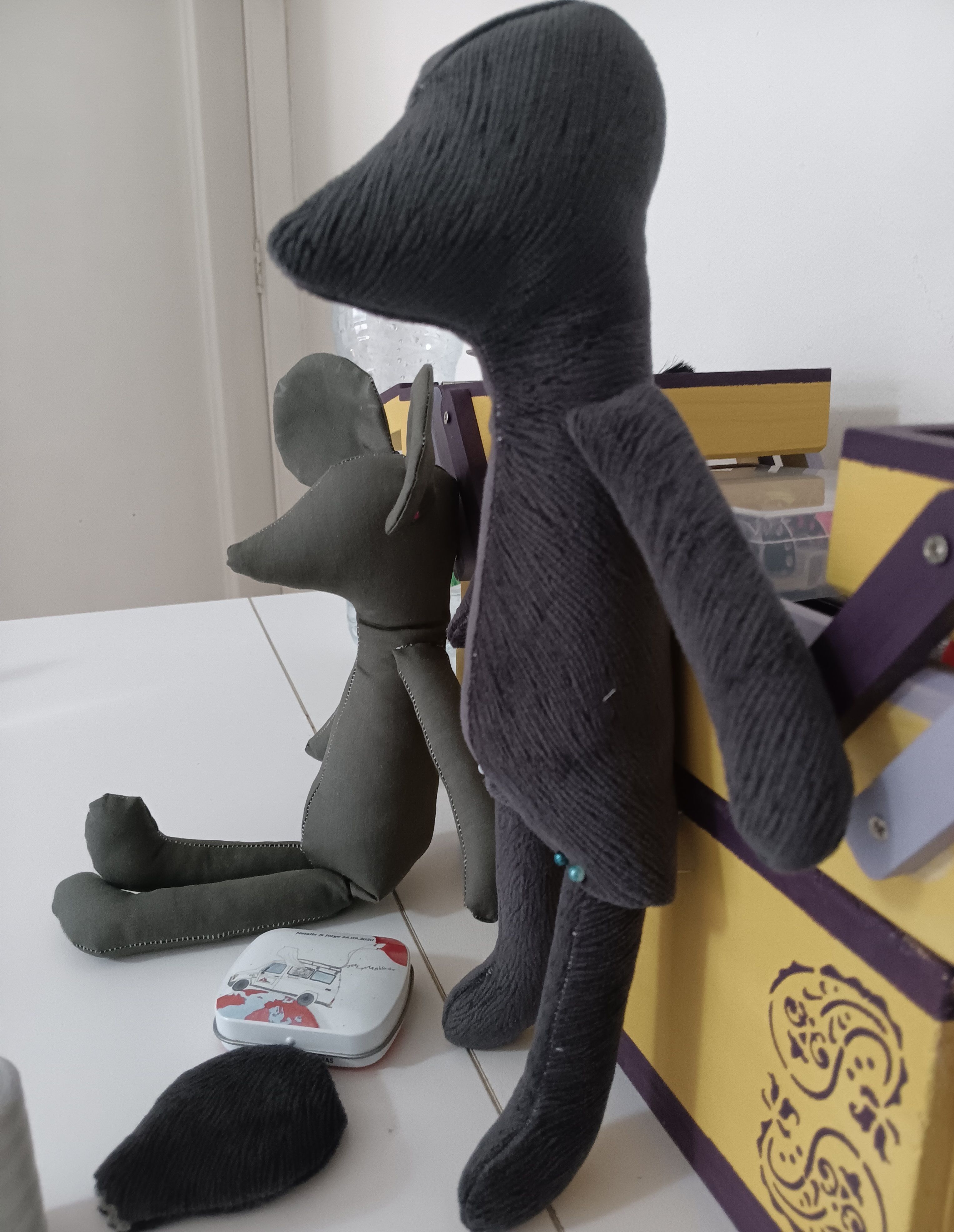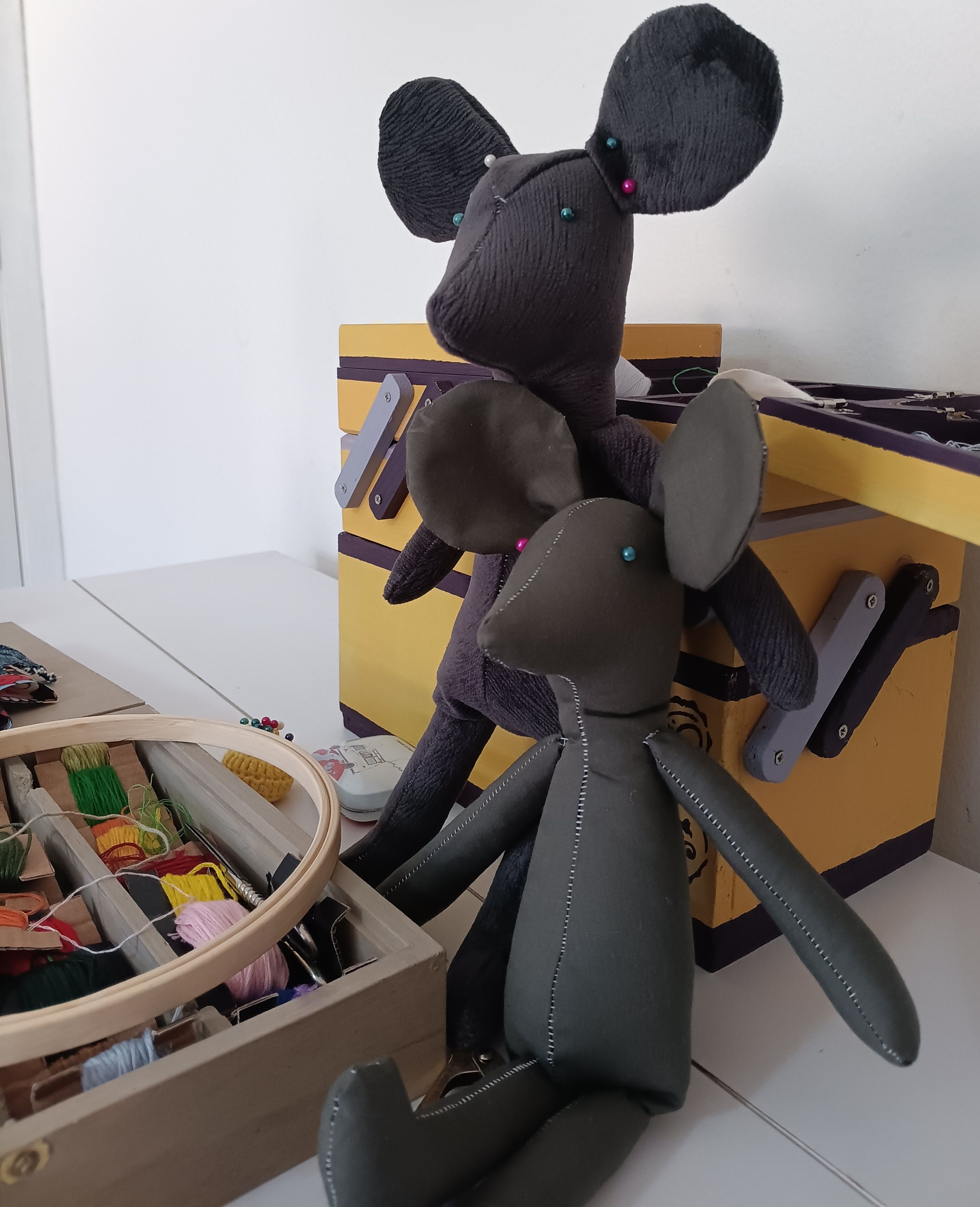 Ratones siguiendo el patrón facilitado en el curso. Cada uno con un tipo de tela y una técnica diferente de construccion de la cabeza.