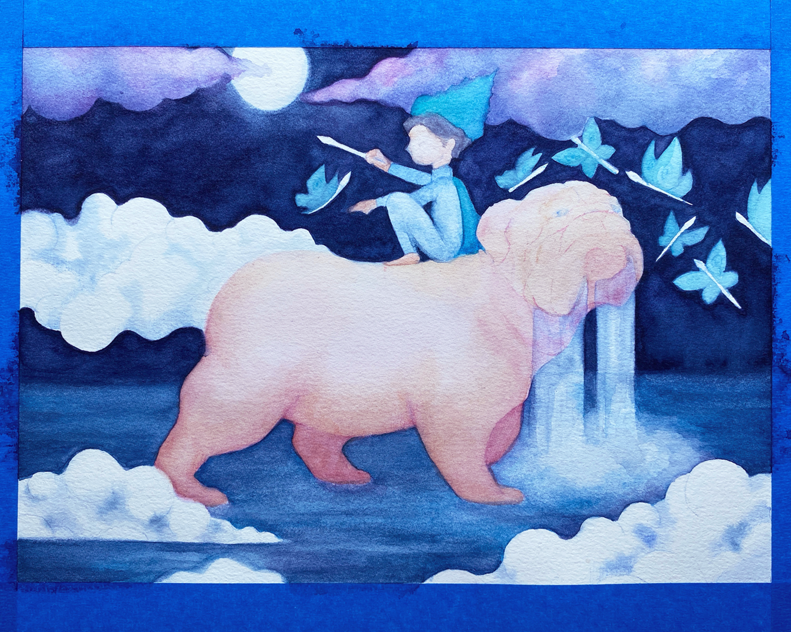 It was a multi-stage process and required a lot of patience, but I liked the final result because all the elements and colors represent various aspects of my dog and me. I was satisfied with the illustration because it was what I wanted to do from the beginning: something very colorful and a dreamlike scene.