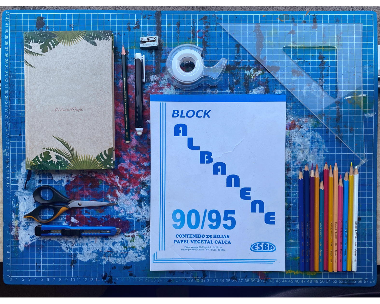 - Lápices de color de la marca Pentel (únicamente usé tonos de amarillo, rosa y azul)