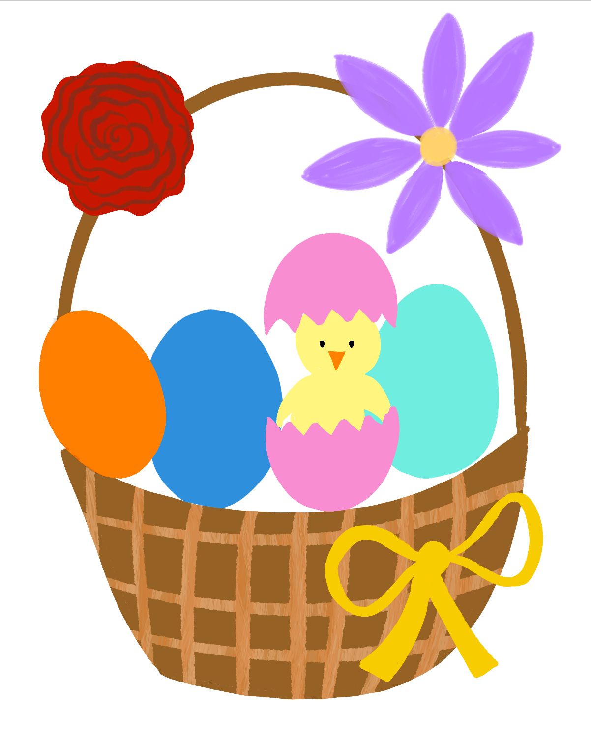 Easter is a holiday that was celebrated very recently. It's a time that excites kids, as they love going on easter egg treasure hunts, and creating arts and crafts with easter eggs. This is the reason I decided to create this illustration of a colorful easter egg basket-to capture the enthusiasm kids feel while celebrating this holiday. My illustration style is bright and colorful, which I've tried to depict in this illustration as well