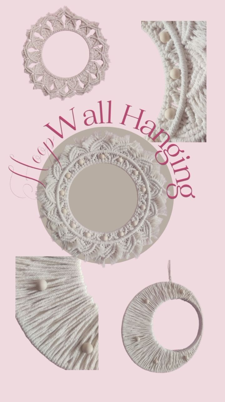 It all started with this mirror, which I’ve given away many times and even sold. For this, I used two rings with a diameter of 20 and 25 cm and knotted from the inside out. The design is flexible, but the number of threads must be calculated precisely beforehand—depending on the design and whether beads are incorporated, it must be divisible by an even number. In general: the bigger the project, the thicker and longer the yarn, and the more expensive it becomes. For a 20 cm ring, I used 84 threads, each 100 cm long. Depending on how tightly you knot, you can use fewer threads, but it’s better to have too much yarn than too little, which could jeopardize completing the project ;)