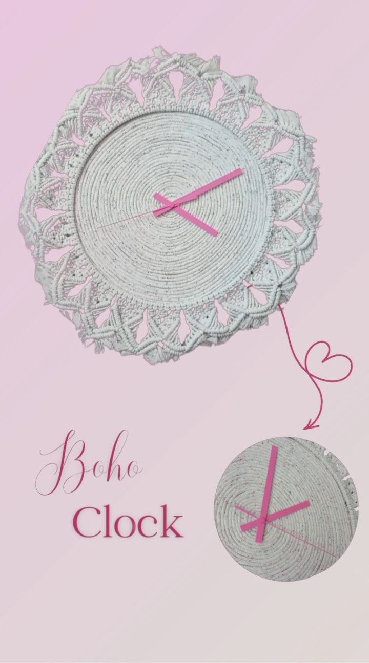 Before that, I removed the glued-on foil and the old clock mechanism, as it had simple and flimsy hands. I then spontaneously decorated the wooden surface in a spiral or circular pattern using 5 mm braided yarn I had left over from making a handbag. The yarn on the ring is 3 mm thick and twisted. Everything was attached with hot glue, and finally, I bought a new clock mechanism along with pink clock hands that visually stand out against the natural-colored yarn. Et voilà: my new upcycled clock in a macramé look. It’s hanging in my kitchen and is a real eye-catcher.
