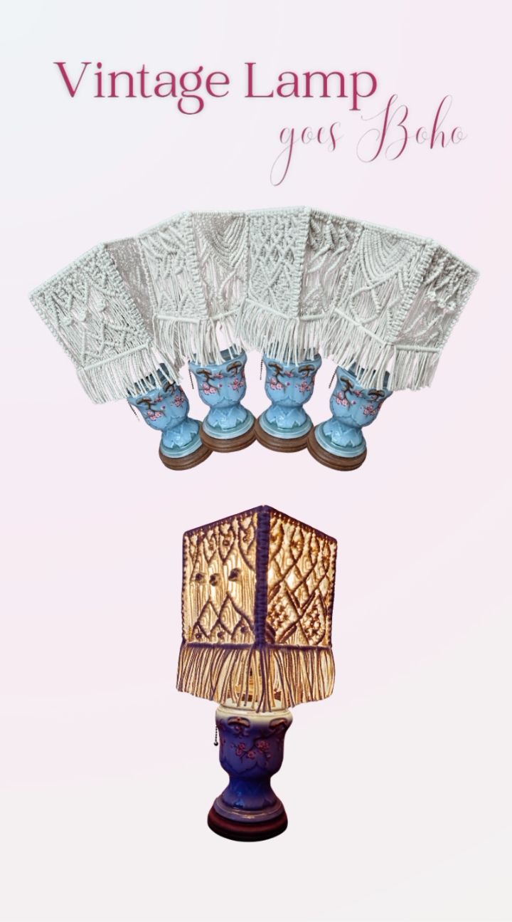Finally, I bought a vintage-style bulb and a ring to attach the shade at the hardware store. And voilà: my very own upcycled vintage lamp in boho style is finished. What do you think? Do you like it?