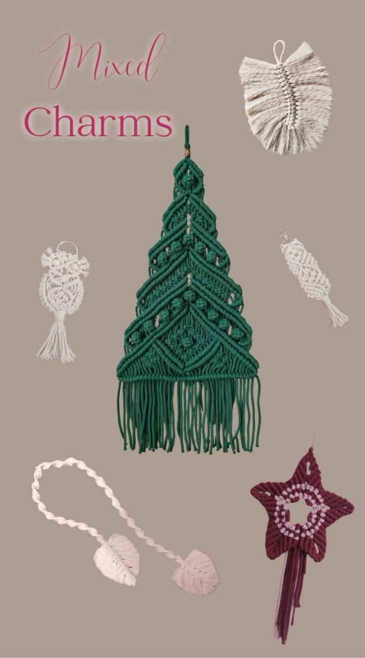 These are smaller projects I made either on the side or using leftover materials from larger projects. I recreated the Christmas tree, similar to the boho fish, just by studying the design—without any instructions. It was great practice and makes for a lovely decoration idea for Christmas. Who says the season of love can’t be bohemian?