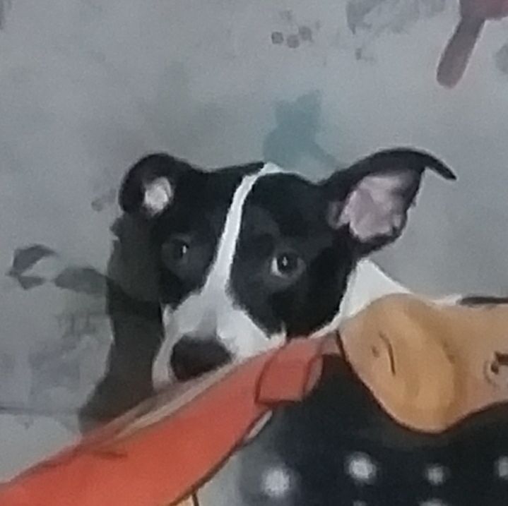 I woke up in complete darkness, my bedroom door was completely open, in the midst of that dreadful gloom a small ray of light peeked through the hallway from a streetlight, then bright eyes stared at me, a shiver ran through my body I couldn't make a sound I was petrified, suddenly those eyes were getting closer to me I started to sweat, my heart raced, in a moment of bravery I ran, turned on the light What a surprise! It was my best friend Barry my pitbull, he came closer, calmly licked my hand I... almost fainted.