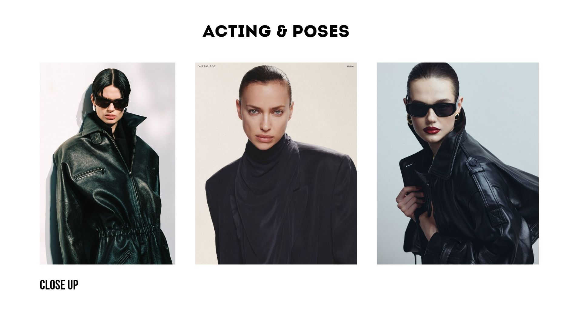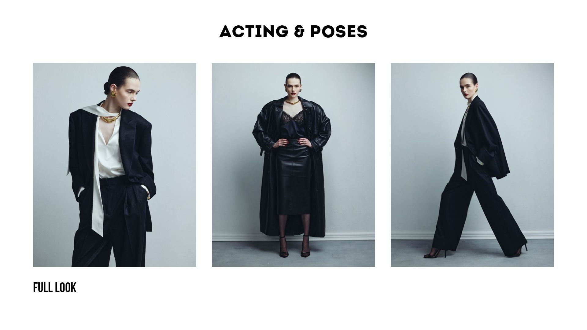 I started by creating a mood board and storyboard to establish the vibe of the shoot — a fusion between high fashion sophistication and rebellious biker attitude. My styling aimed to blend masculine and feminine elements, reflecting the versatility of the leather jacket.