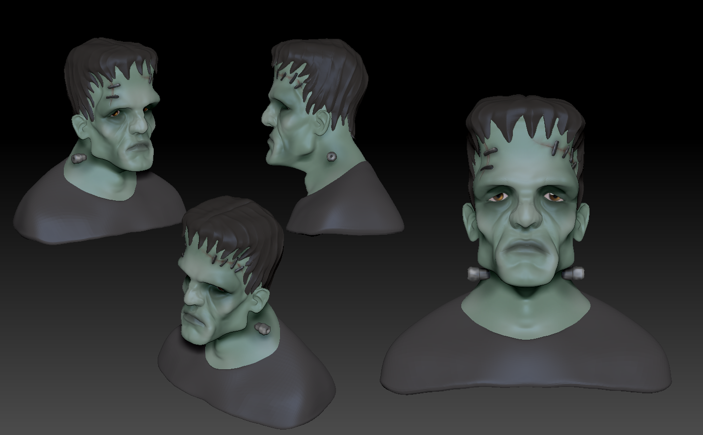 I recreated Frankenstein and Maleficent while learning ZBrush techniques for anatomy, form, and expression.