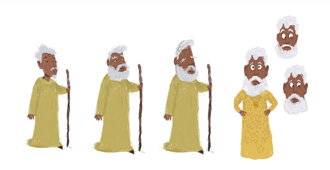The story depicts 2 main characters, the master and the bright student named Akouba. I had no specific location of the story only it was take place along time ago, in a simple times. For me it immidiatly through me to Africa. I started researching and drawing characters.