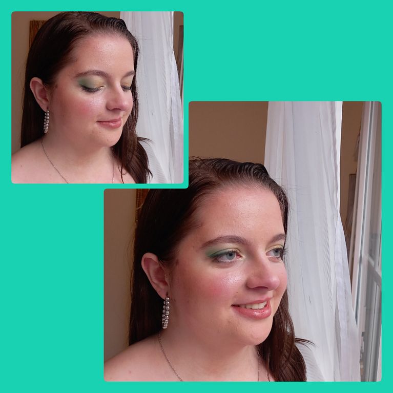 Voici nos maquillage à l'issue des cours. Notre projet est d'oser la couleur en prenant en compte la couleur des yeux pour la faire ressortir, en gardant un côté glamour