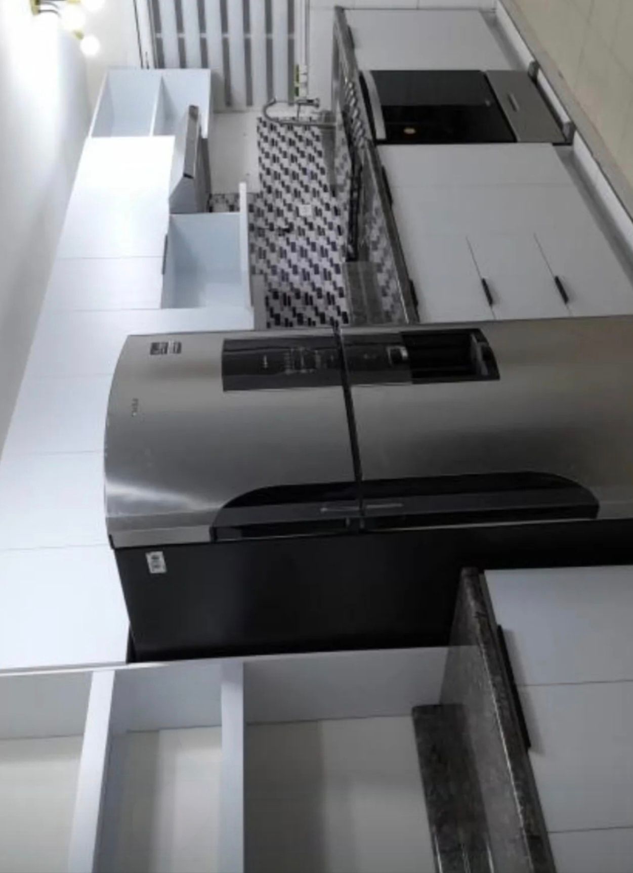 Utilicé pinturas, lambrin, una especie de plafones con texturas para recubrir una pared que no me gustaba nada y que sería muy costoso quitar o cambiar el acabado, muebles comprados de acuerdo a la medida del espacio y la cocina fabricada a la medida y necesidades