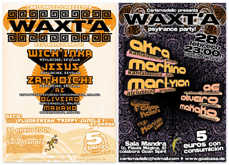 Flyers para fiestas de Pshychedelic Trance, organizadas por el colectivo malagueño Carismadelic.