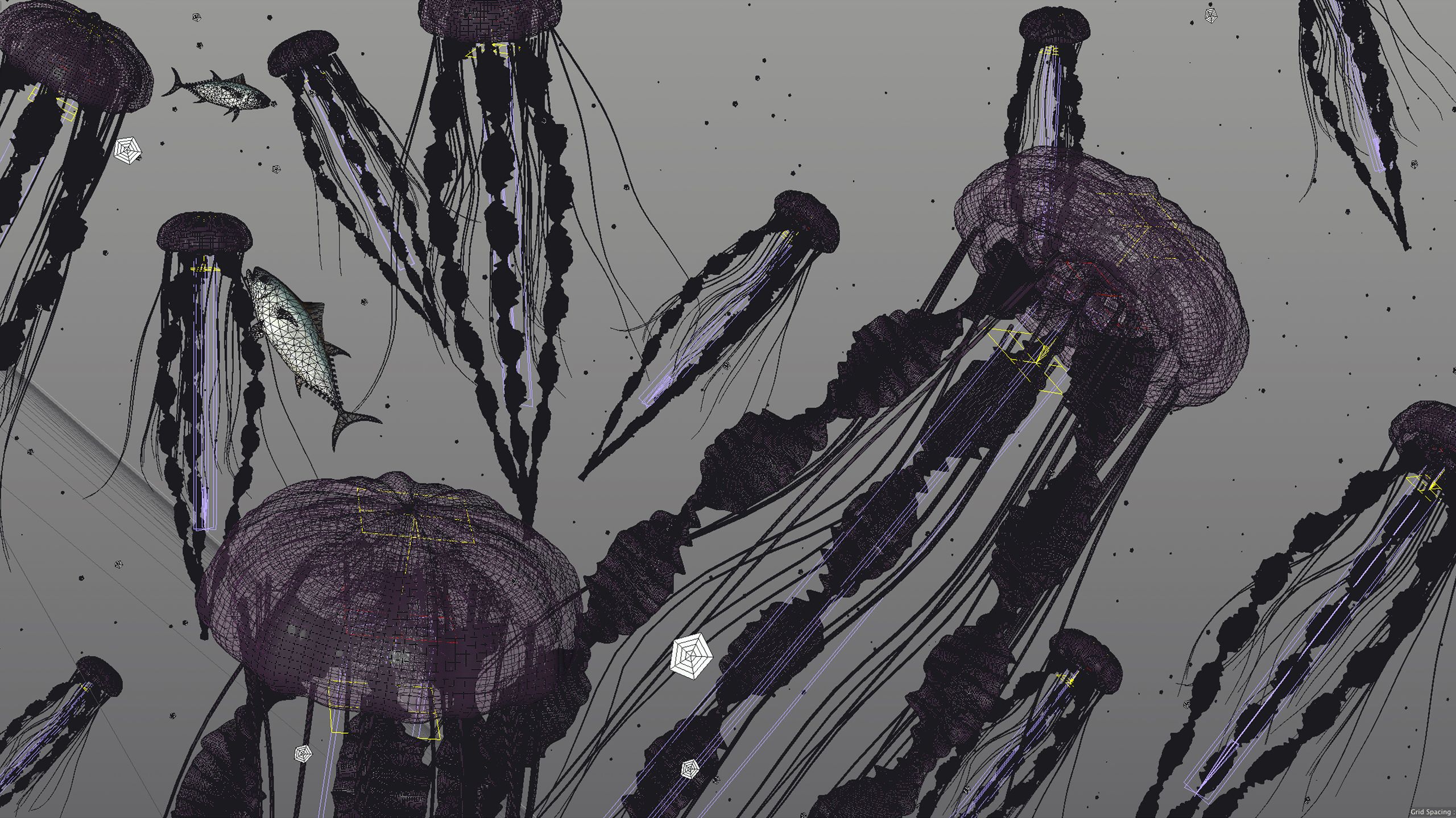 Comparto con todos vosotros este proyecto experiencial 3D. Tutorial realizado con cinema 4d imitando un espacio natural rodeado de medusas y otros peces. Muy interesante lo aprendido en este proyecto, trabajando con splines, efectos aleatorios y sorprendido con los buenos resultados de los materiales con la luces utilizadas.
