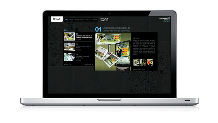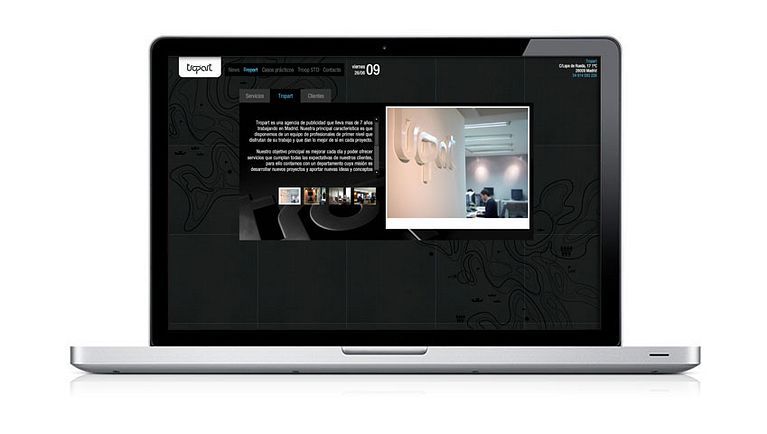 Página Web para nuestros amigos de Tropart. Desarrollo y programación de la nueva web. Flash as3, papervision. Todo el contenido se gestiona a través de xml.