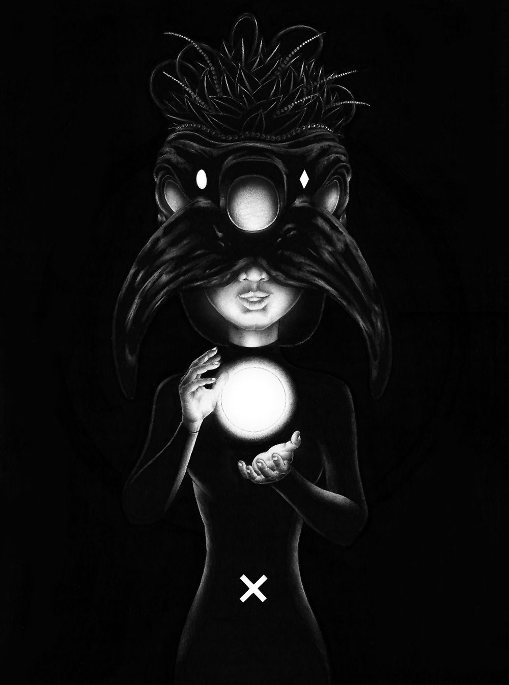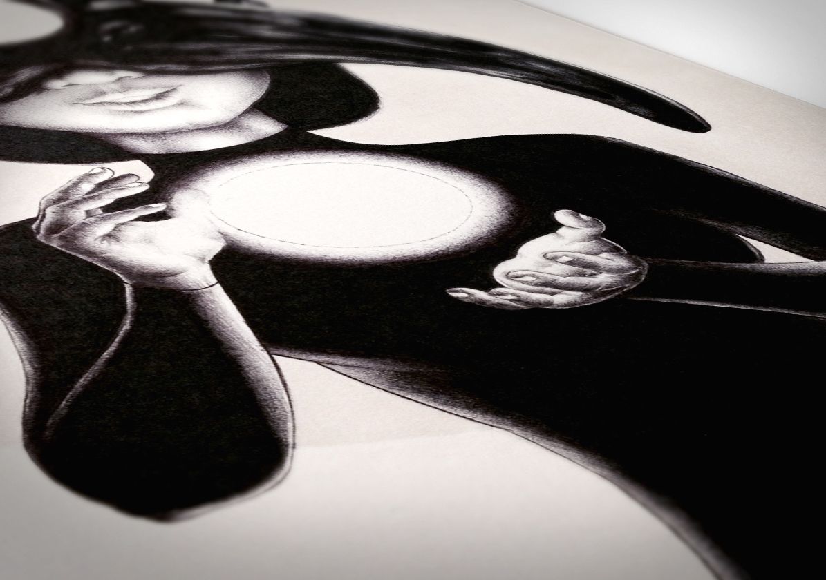 The drawing is made with a ballpoint pen and finished with a black marker on 30 x 40 cm paper.