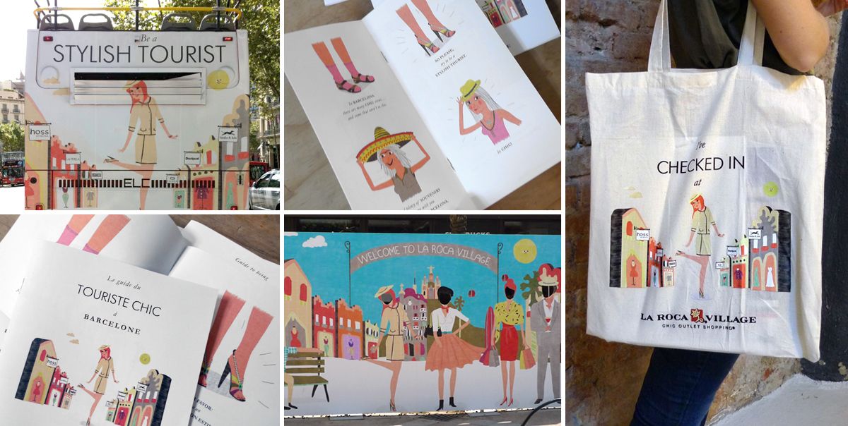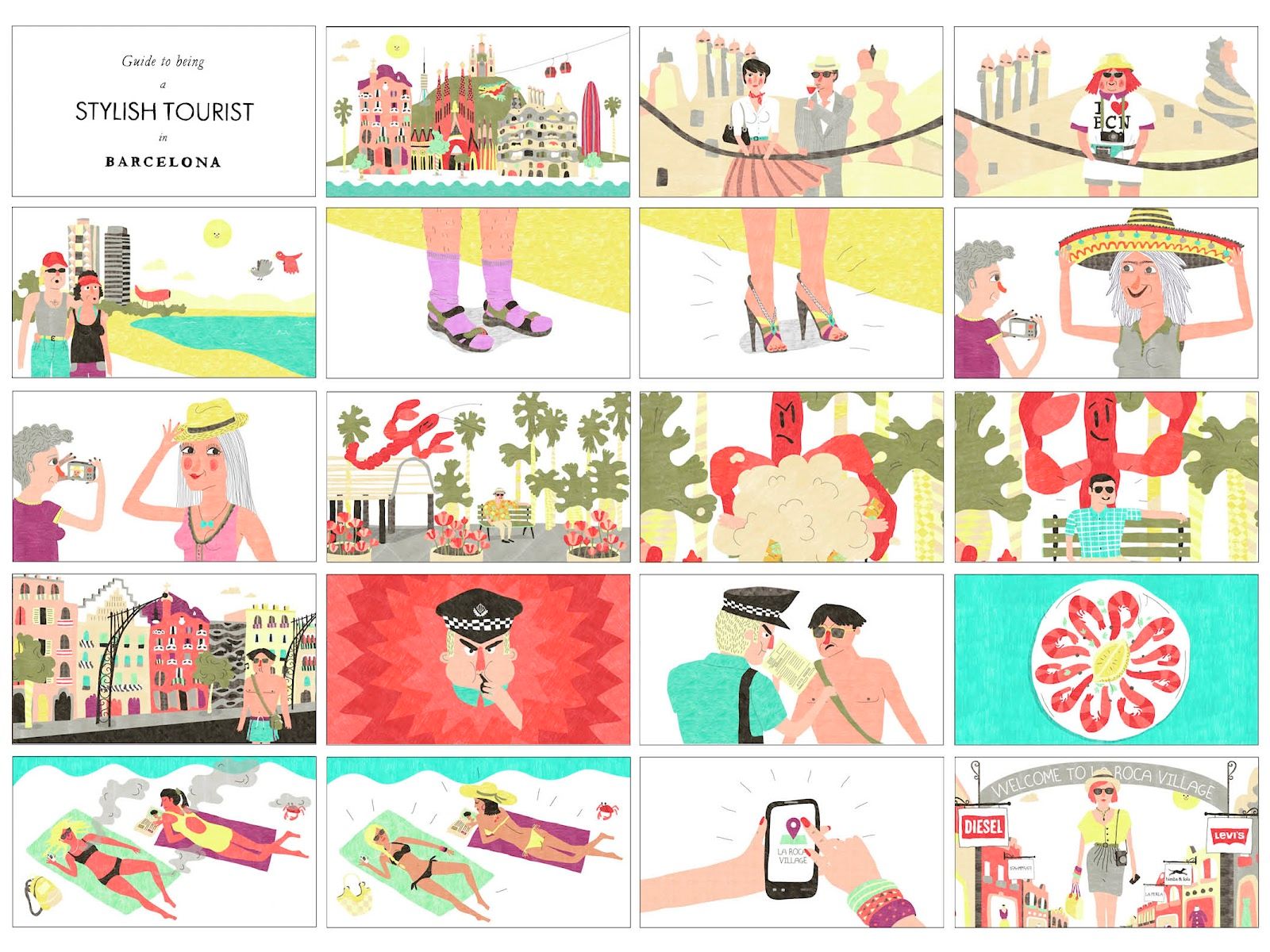 Illustrations for an advertising campaign for La Roca Village. Animation by Home De Caramel.