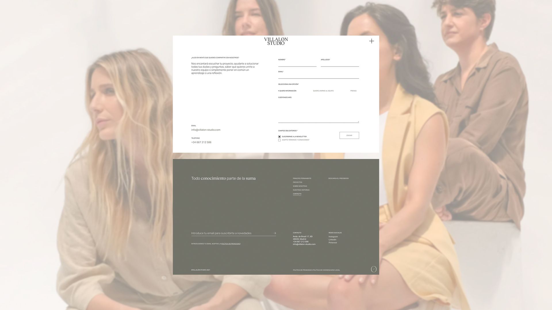 Through a website with a strong presence of white spaces and images, we give rise to a dialogue and a dynamism that is felt throughout the experience. A navigation that tries to take us to a calmer pace and reflection of space, where a dialogue between the studio and the user takes place. A direct and contemporary aesthetic, without flourish, with which to leave a mark.