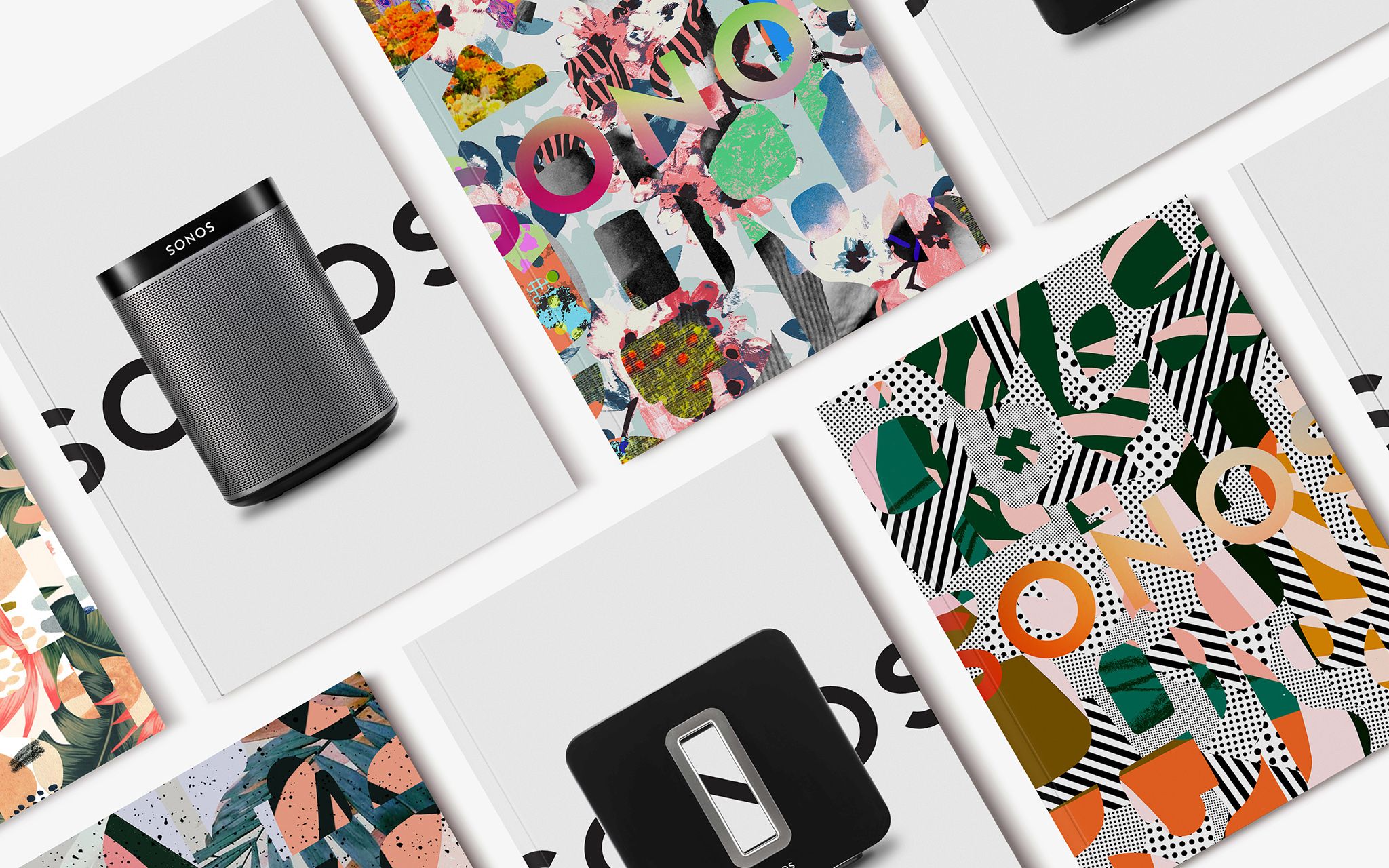 Sonos felt the need of giving a home sense to their products in order to make them warmer and compensate the cold and tech side of the overall communication. We use all kind of home wallpapers, from retro to geometrical, mixing them up on a funny and appealing collage composition. The result brings a contemporary and fresh approach which combines perfectly with the clean, black and white technological part of the product.