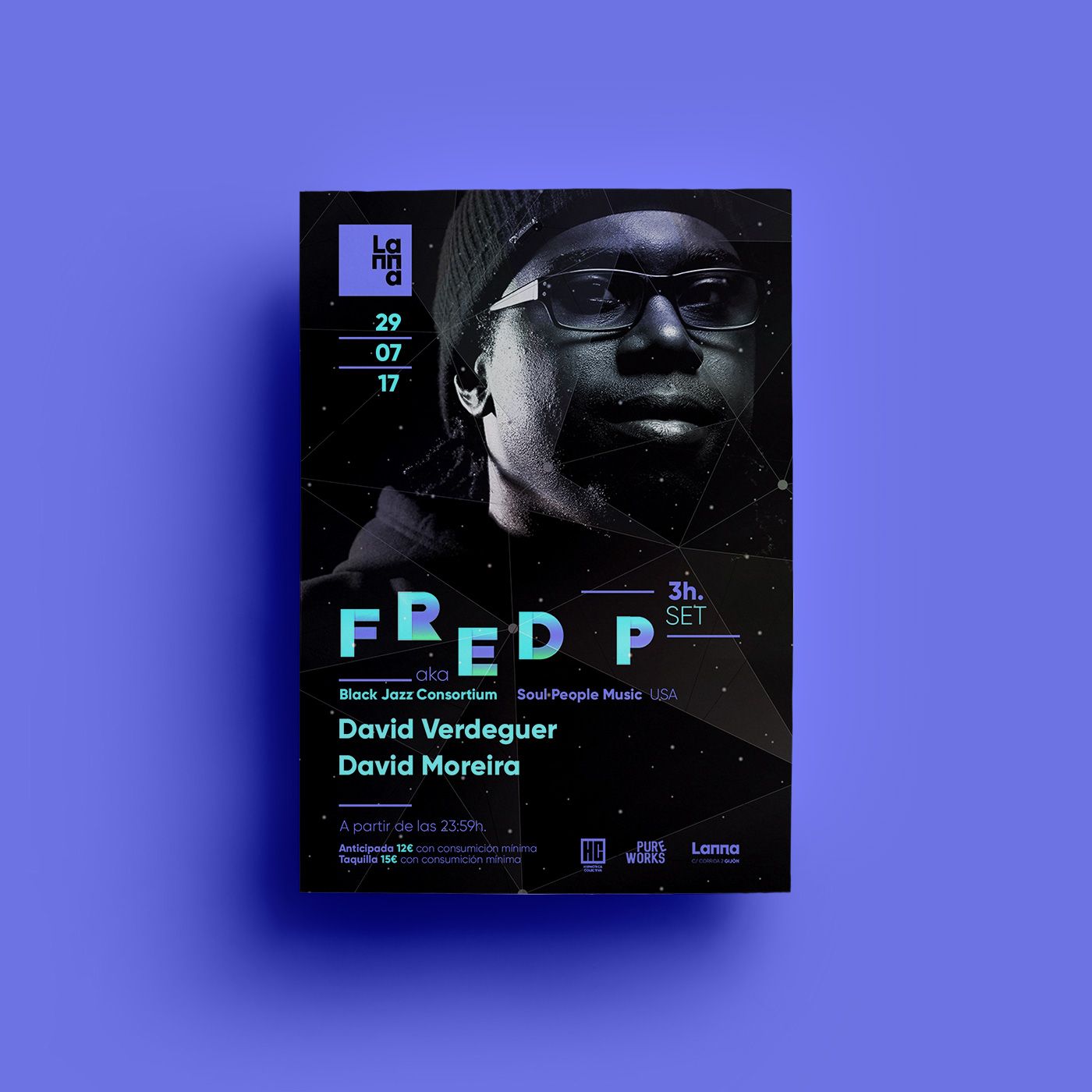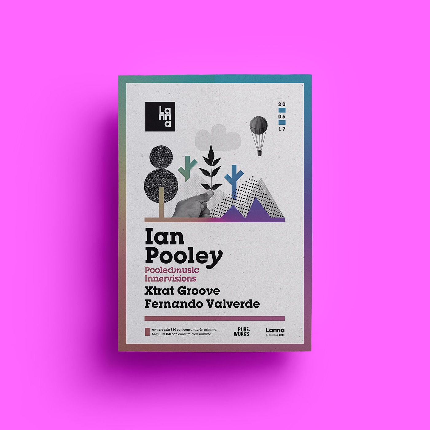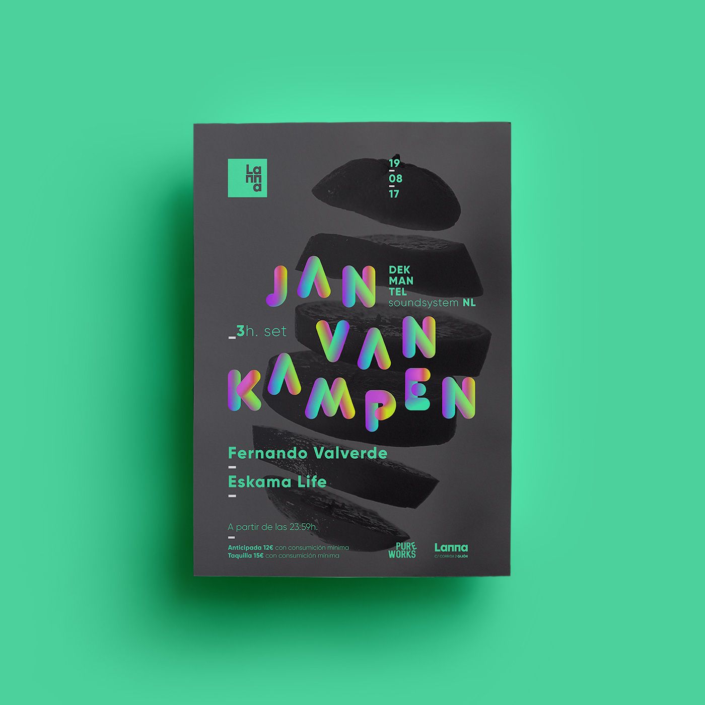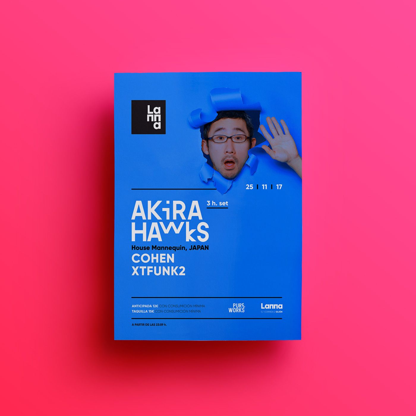Flyers designed during 2017 for the events of the promoter Pure Works at Lanna Club (Gijón).