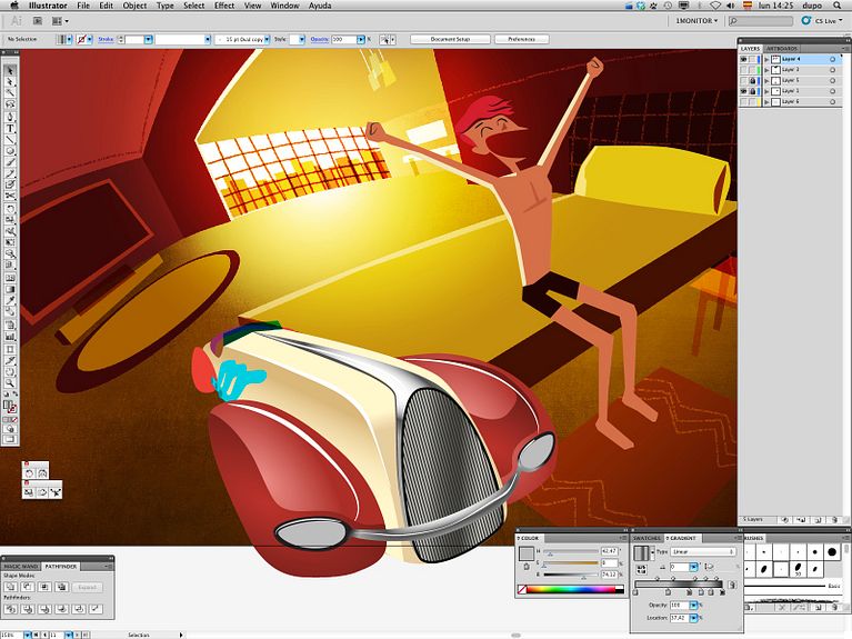 Durante toda la realización del material gráfico del proyecto, estuve capturando el proceso para crear un 'speedpaint'. Este es un montaje con algunas de las imágenes: