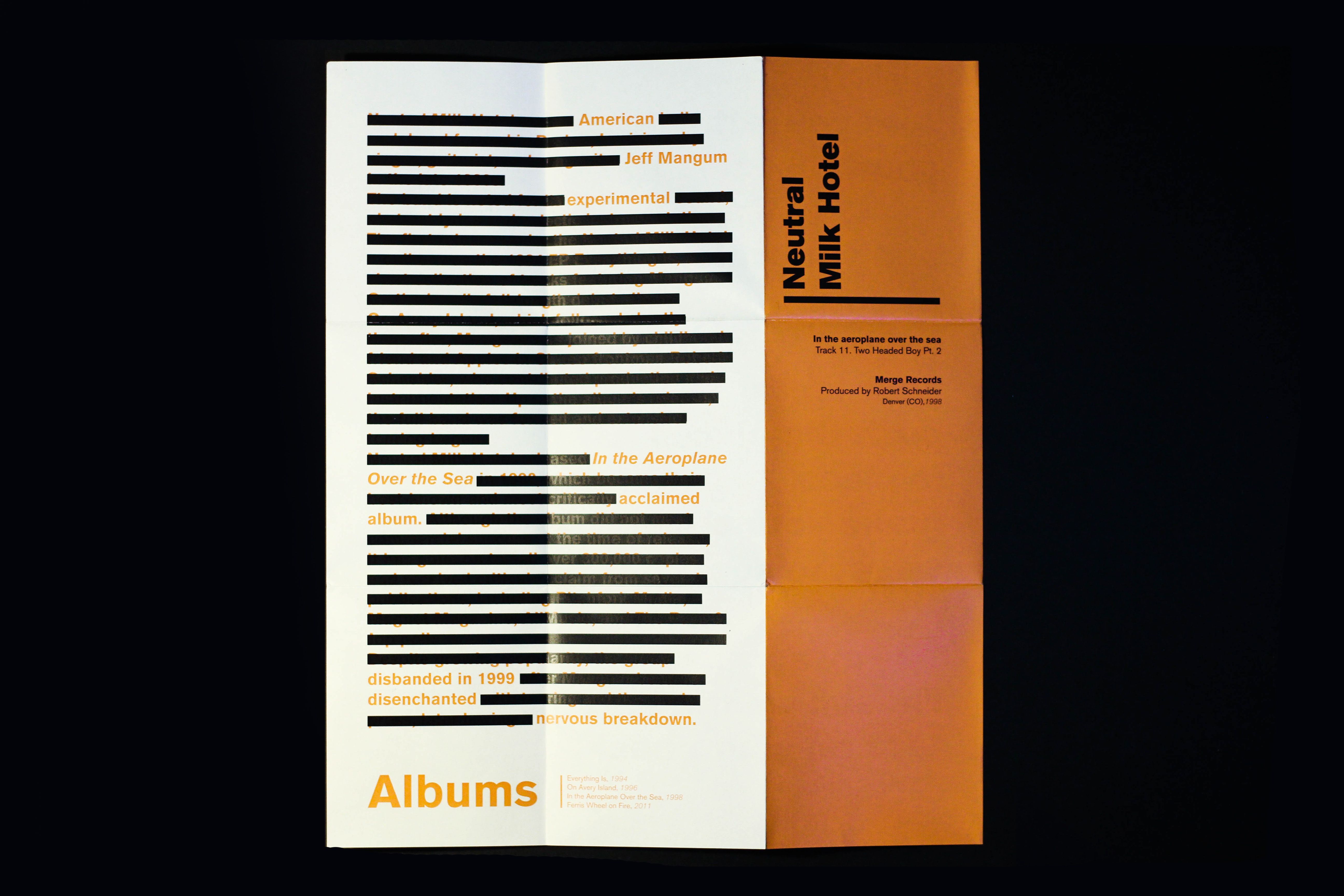 Fanzine and brochures developed around the album In The Aeroplane Over The Sea by the American group Neutral Milk Hotel.