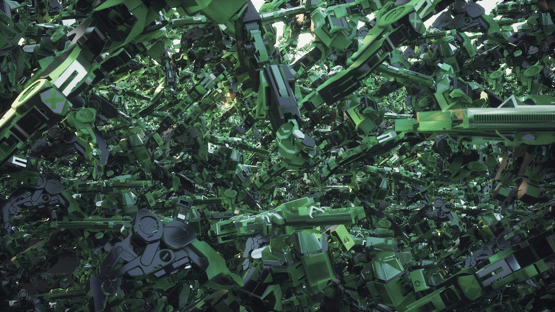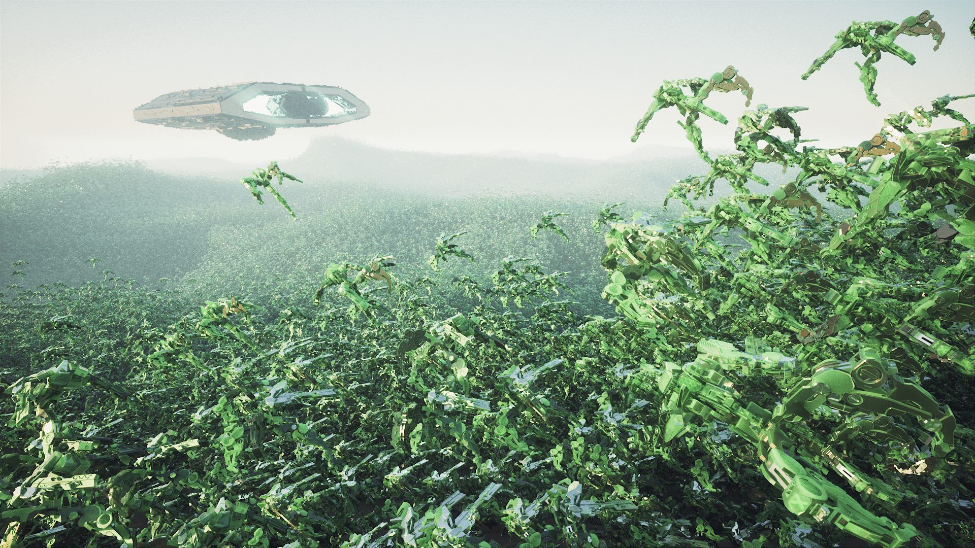 Testeo con Fstorm Render + multiscatter y un robot en alta resolución con translucencia.