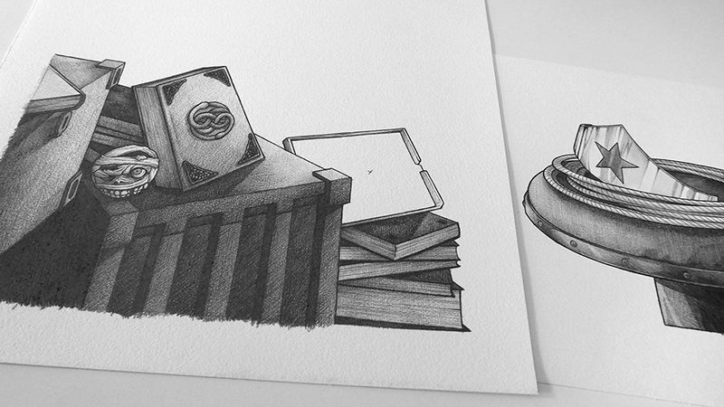 Hice los dibujos originales por separado, para después unirlos en Photoshop. Algunos elementos fueron cambiados durante el proceso.