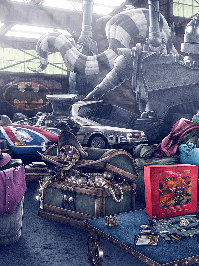 Illustration for a smartphone/PC game based on Steven Spielberg's new film Ready Player One." There are 30 pop culture references throughout the . Can you find them all?