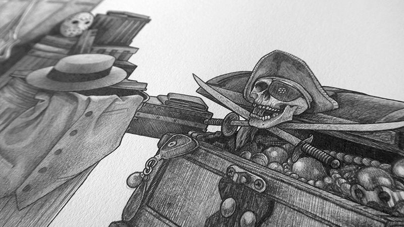 I made the original drawings separately and then combined them in Photoshop. Some elements were changed during the process.