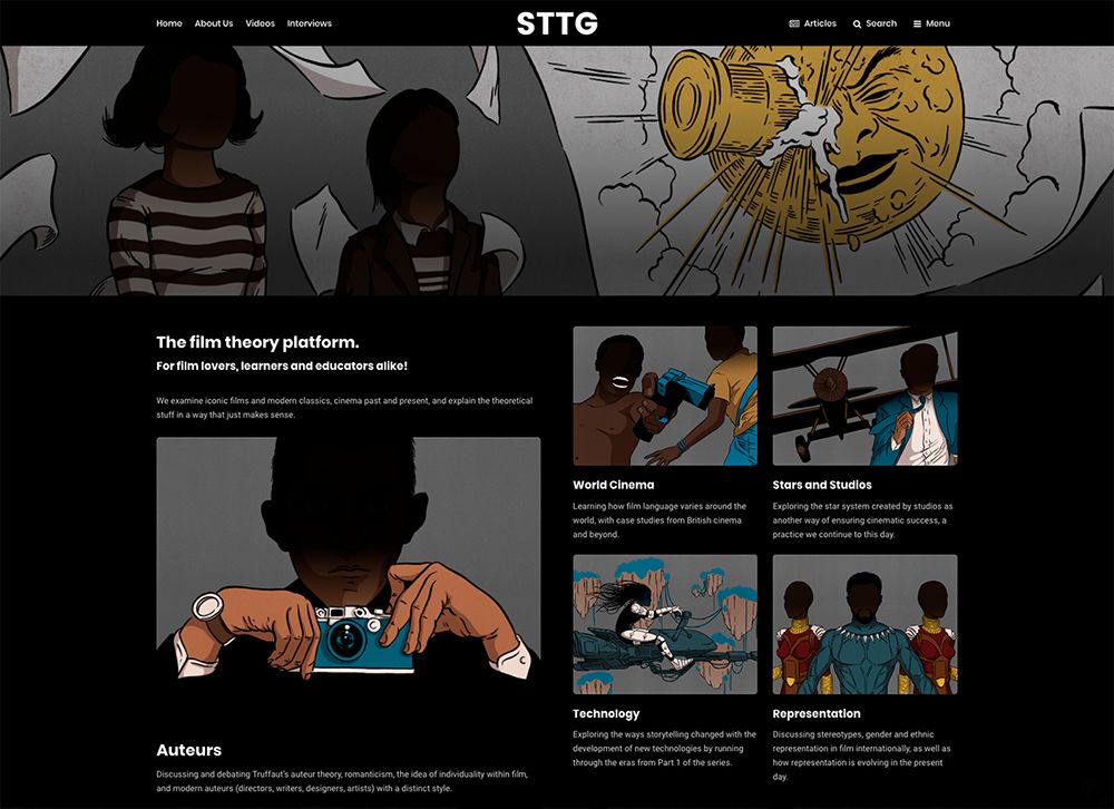 So The Theory Goes is an online platform that analyzes film theory through both classic and contemporary films. This series of illustrations serves as an introduction to the videos on the different areas of study, as well as the headers on the website.