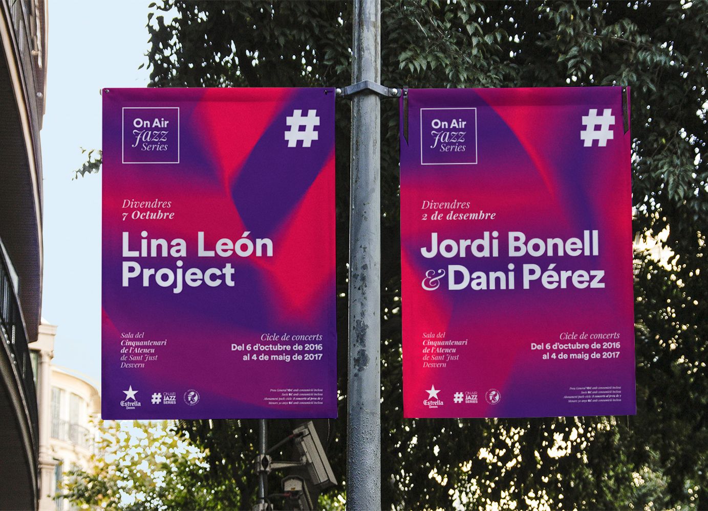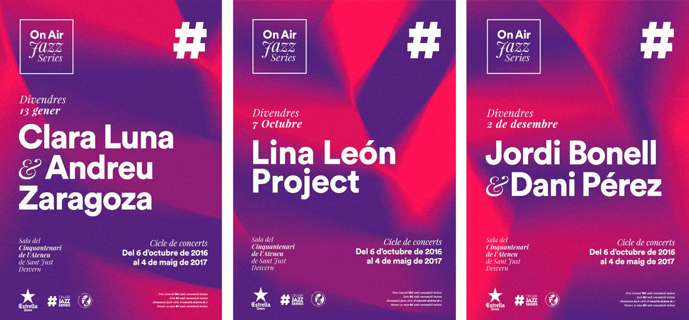 Identitat visual per al cicle de concerts de jazz de On Air Jazz Series 2016 (Sant Just Desvern, Barcelona). | Identidad visual para el ciclo de conciertos de música jazz de On Air Jazz Series 2016 (Sant Just Desvern, Barcelona). | Visual identity for the On Air Jazz Series jazz concert cycle 2016 (Sant Just Desvern, Barcelona).