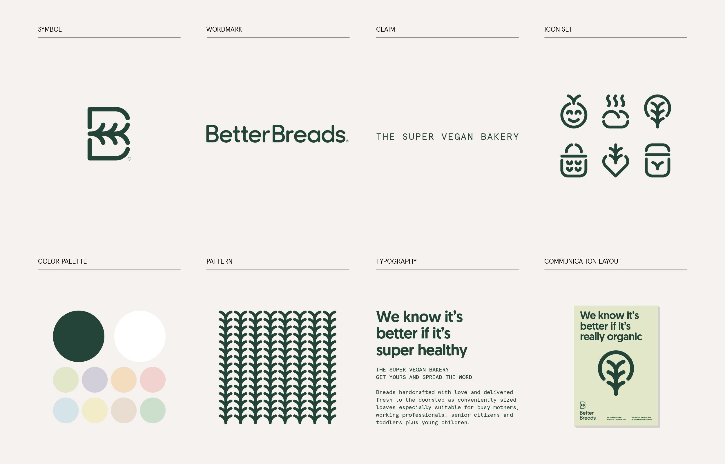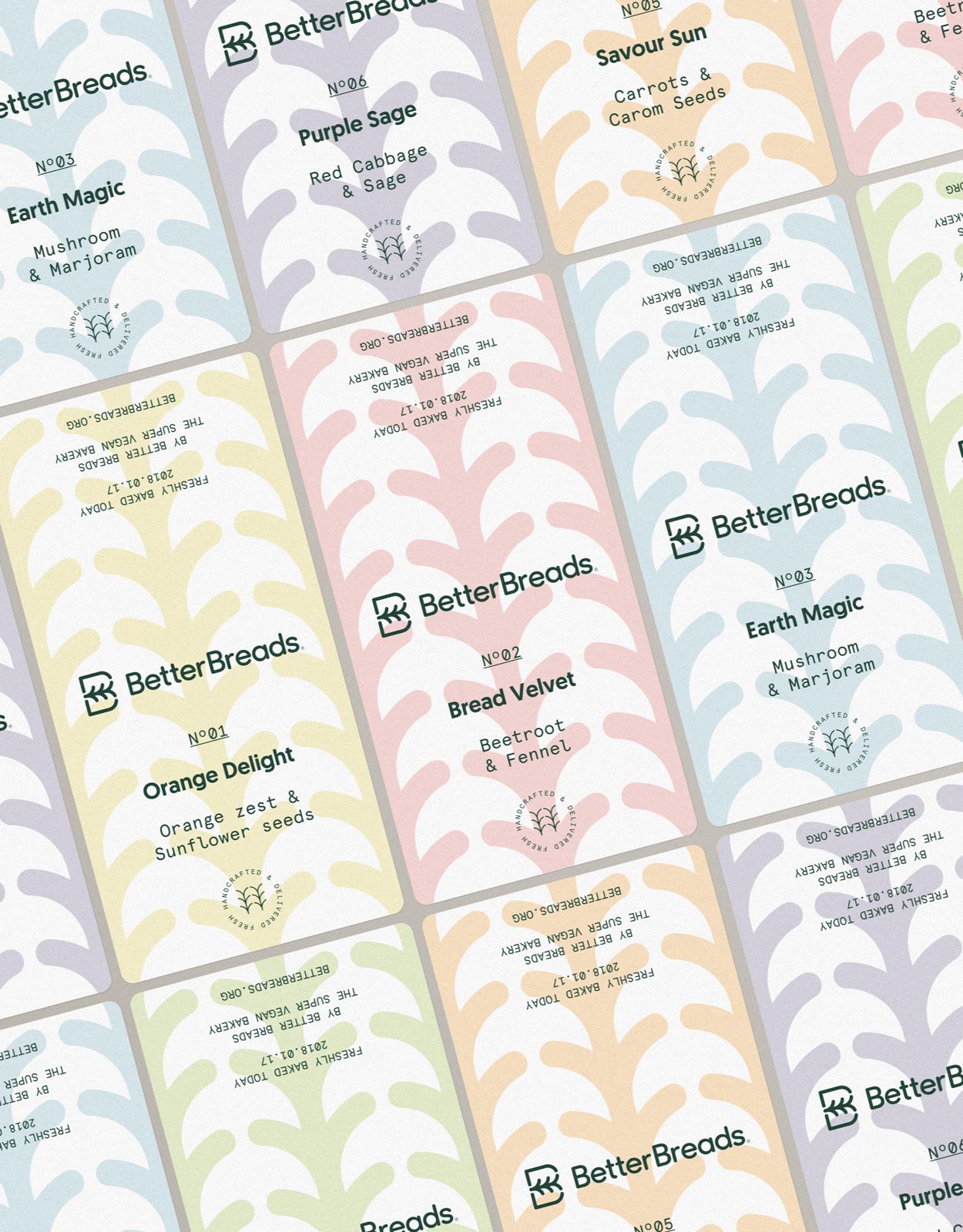 Además, elementos característicos del símbolo se toman como referencia para desarrollar todo el sistema visual de la marca. Creando un lenguaje propio para la panadería el cual se implementa tanto en su comunicación como en el sistema de empaquetado de sus panes. Donde un adhesivo editable, e impreso localmente en la panadería, puede modificarse para cambiar el color, nombre, fecha e ingredientes; con el fin de etiquetar fácilmente los diferentes tipos de pan hechos cada día.