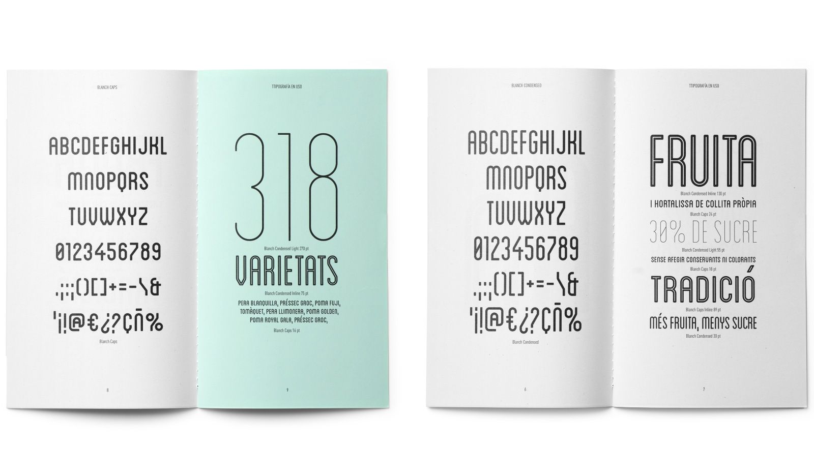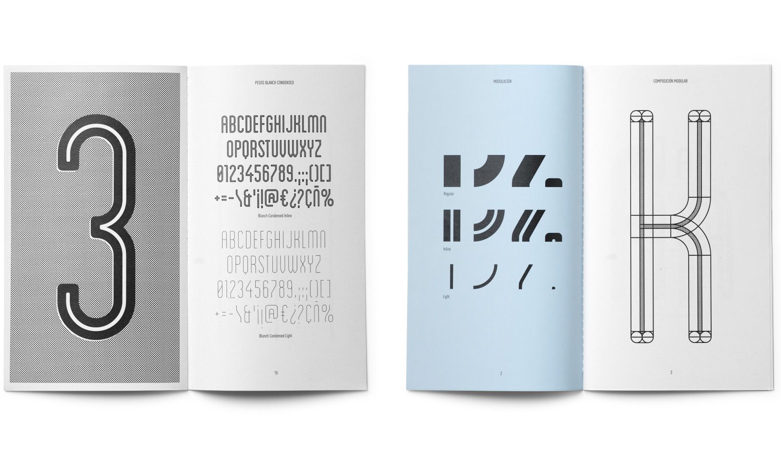 Se trata de una familia tipográfica modular a medio camino entre un palo seco de inspiración 50’s y el juego de caracteres numéricos que utilizan la mayoría de máquinas etiquetadoras. Conceptos aparentemente antagónicos que confieren una tipografía atípica.