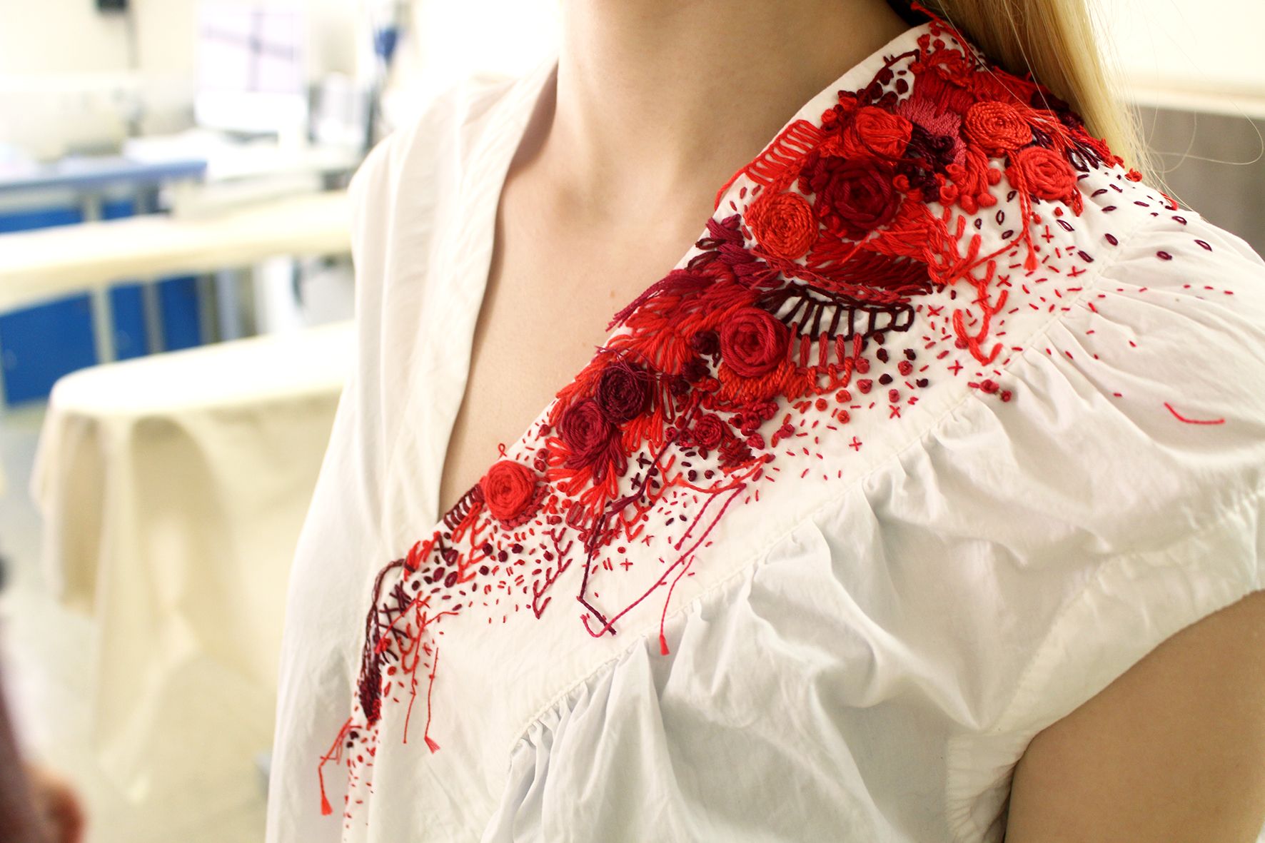 Encantada con mi colaboración que consistía en improvisar bordados muy expresivos para algunas de las prendas de la colección.