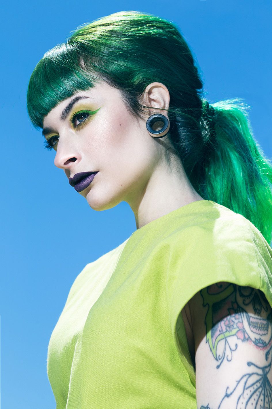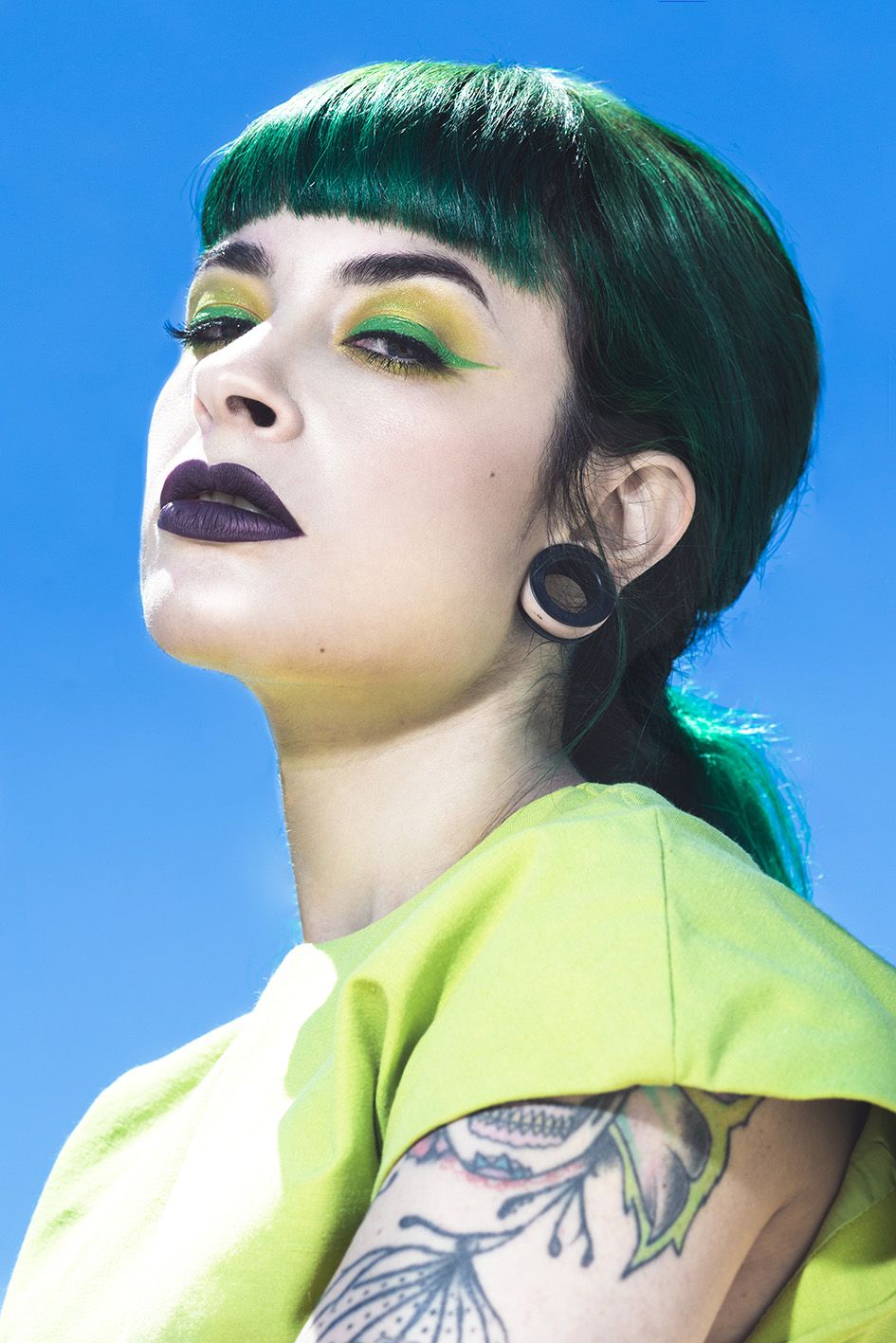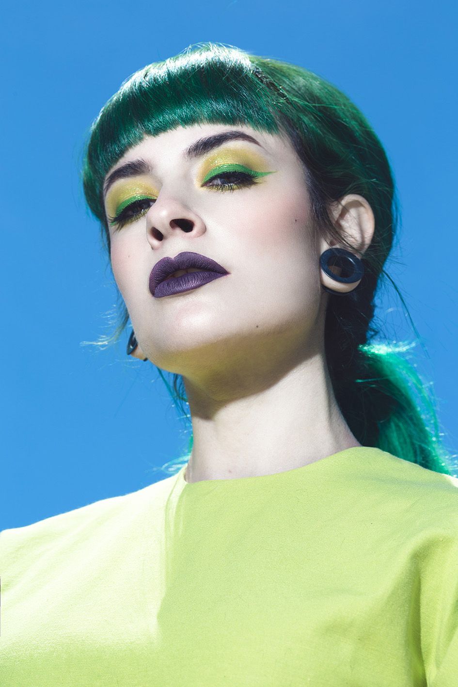 Me inspiré sobretodo en la estética, la saturación y mezcla de colores, los peinados y maquillajes excéntricos y en los personajes originales que siempre elige Nadia en sus sesiones, en mi caso me decante por la modelo ''Maria Lawliet'' (@maria_lawliet) con su larga melena verde.