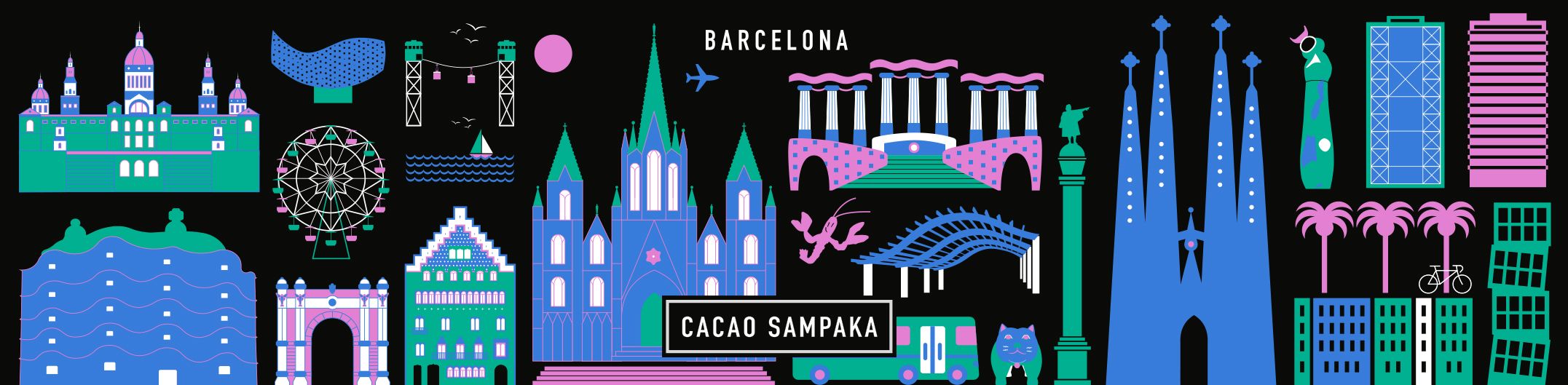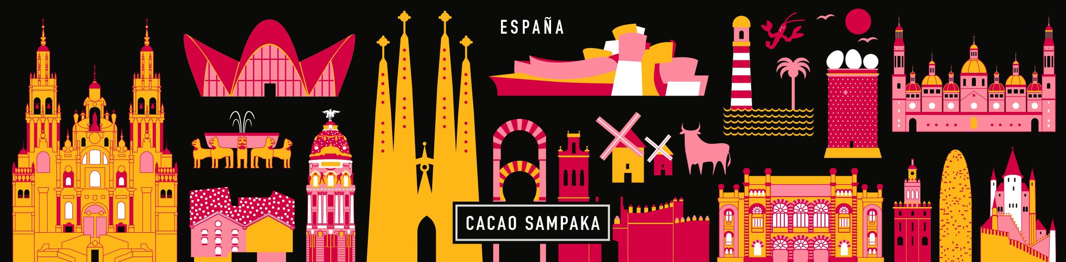 Nuevo diseño para las tentaciones y grageas de chocolate de Cacao Sampaka. El proyecto consiste en crear una serie de packagings turísticos, que estarán a la venta en tiendas de degustación de los aeropuertos de España.