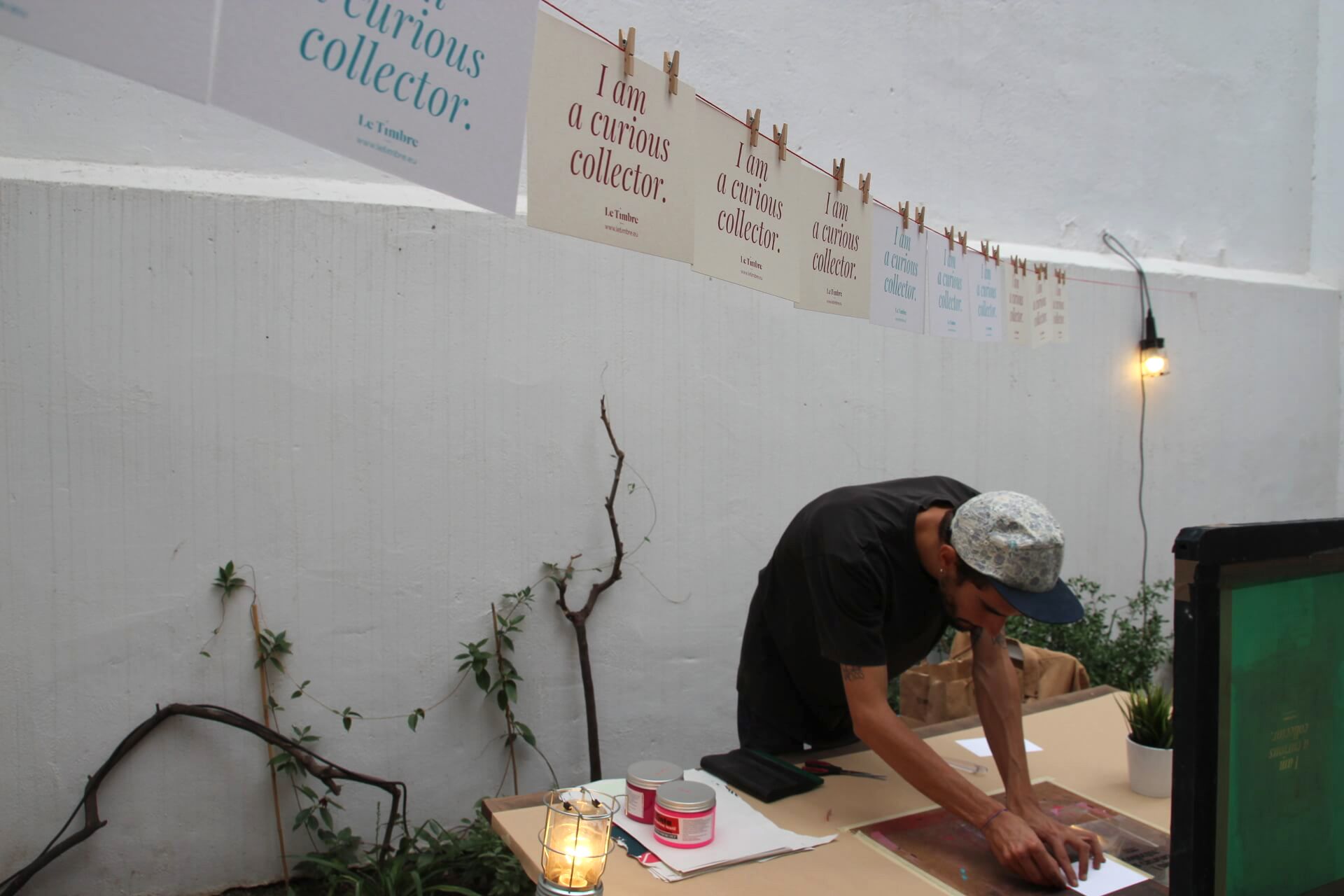 De la mano de nuestro enviado especial Alejandro Alonso hemos compartido con los invitados de Le Timbre y Cromo nuestro amor por la serigrafía y la edición limitada, estampando así en vivo y en directo una pequeña postal y souvenir del evento.