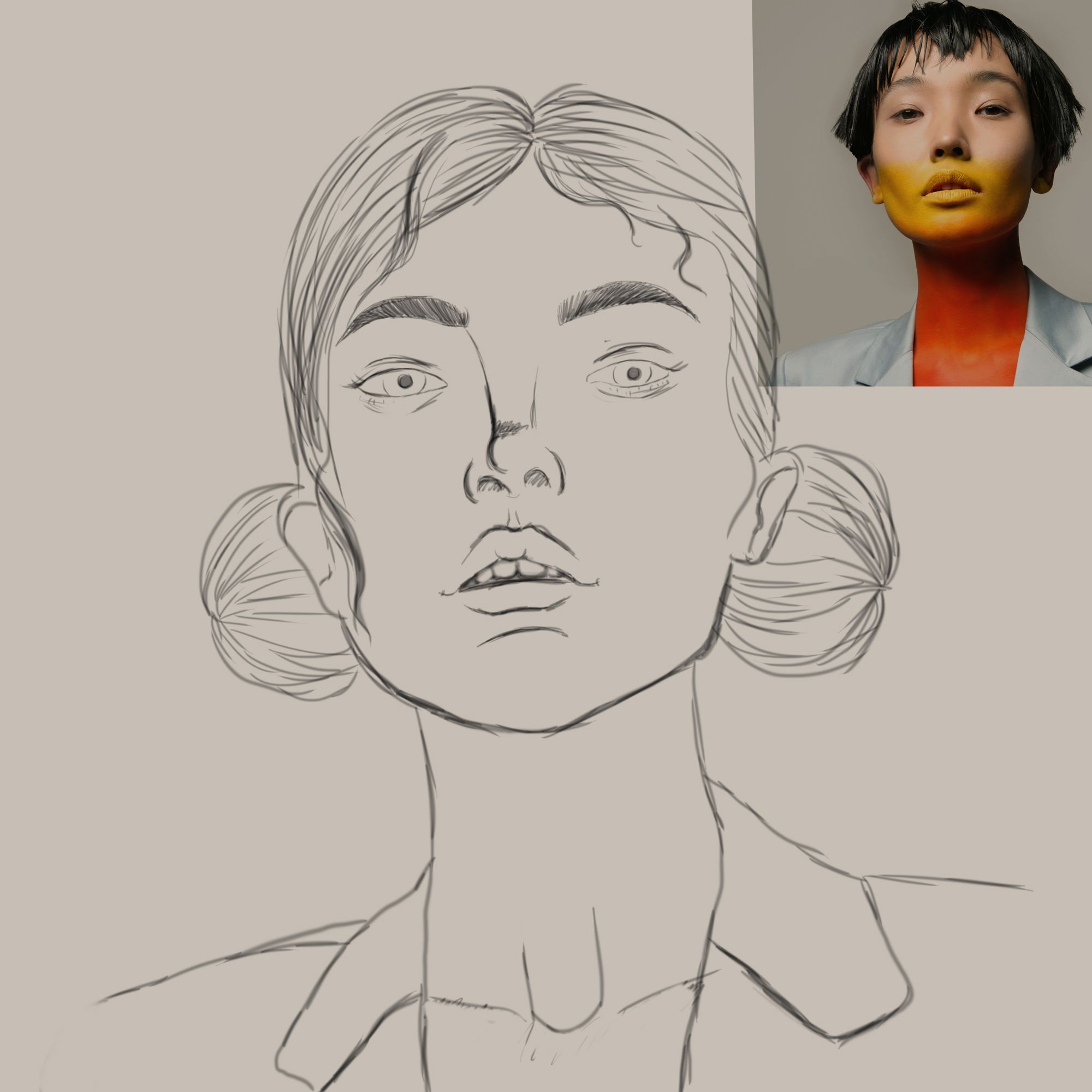 1. Choose a reference and have it as close as possible as a sample. This will be our guide. This first step is very important when it comes to detailed illustrations; we must carefully observe the lights and shadows. Once we have our reference, we make a sketch.