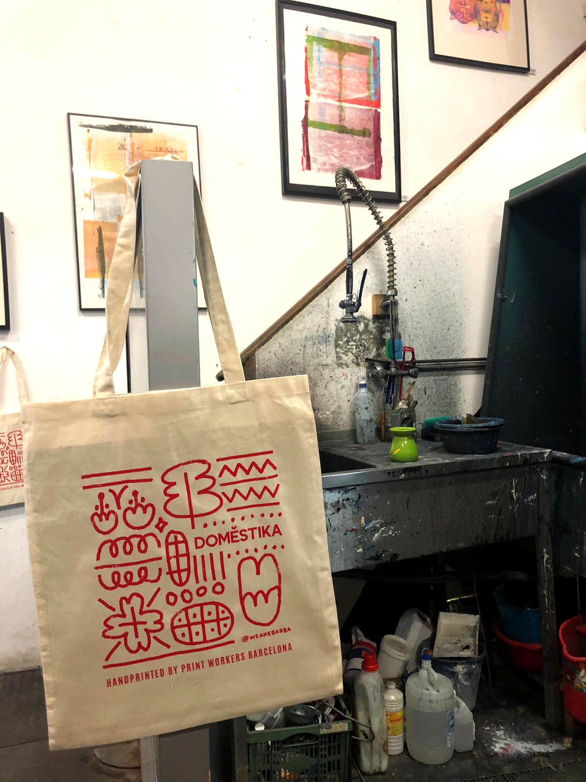 Todo listo para estampar las tote bags con el estupendo diseño realizado por Barba