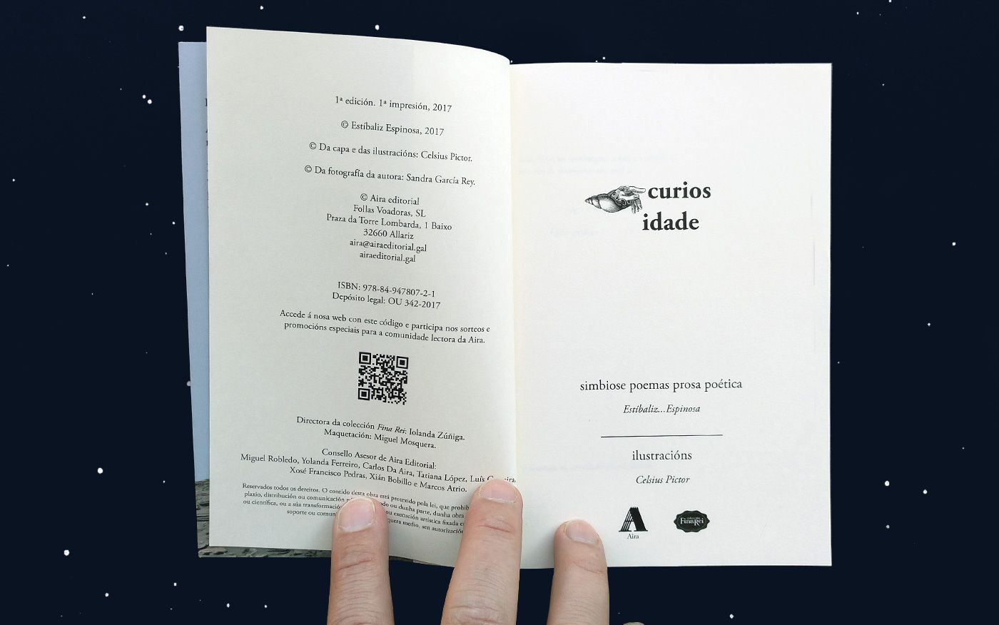 La editorial novel Aira Editorial me contactó para ilustrar "Curiosidade" (curiosidad), el primer libro de la poetisa gallega Estíbaliz Espinosa. Este libro también es el primero de su colección "Fina Rey", dedicada exclusivamente a publicar obras de poesía escritas por mujeres.