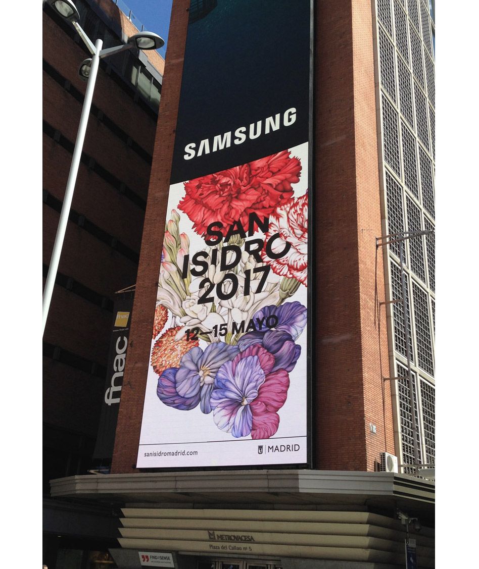 La idea era transmitir el ambiente de verbena y primavera con las flores típicas de las letras de los chotis madrileños, como los nardos, los claveles, las violetas... y por supuesto el madroño, símbolo de la capital.