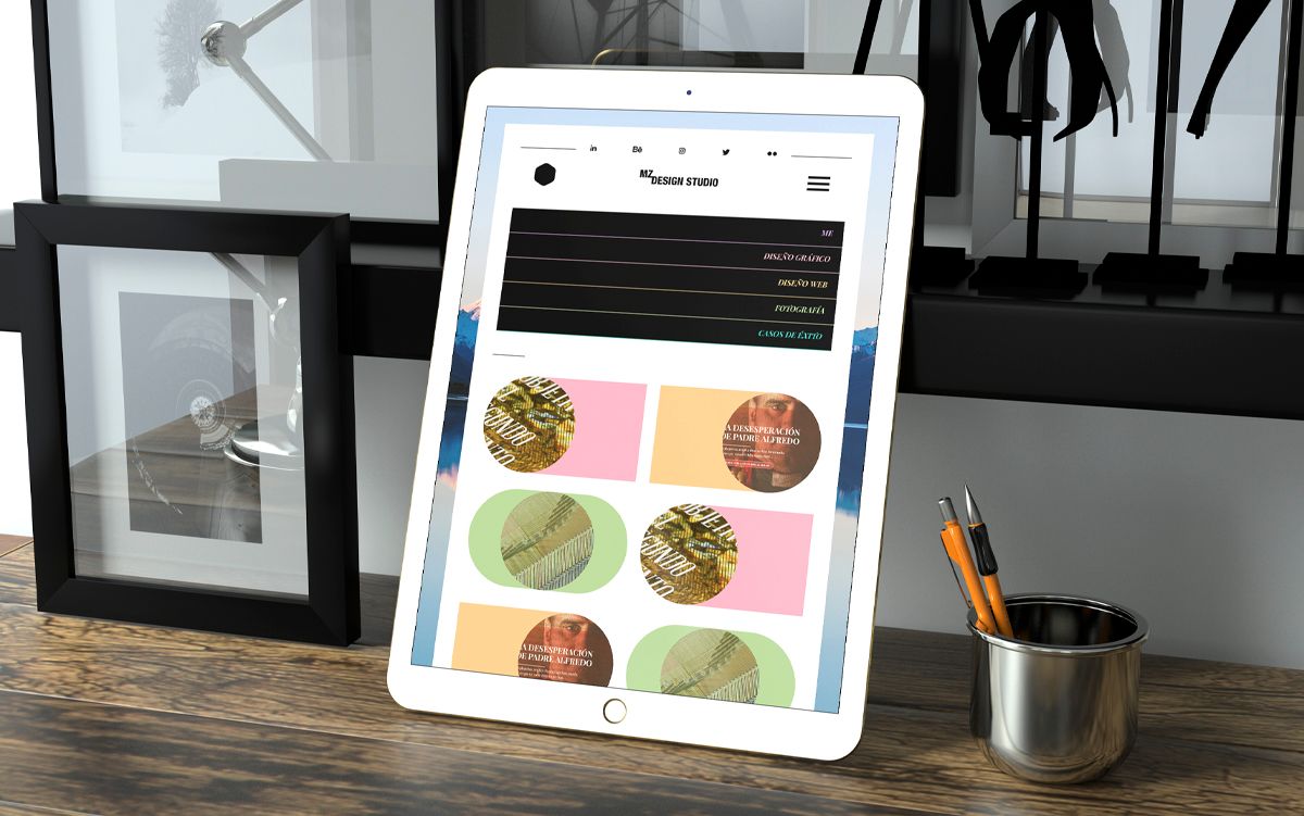 Diseño de mi portfolio profesional teniendo en cuenta las herramientas y tendencias actuales de diseño web como la maquetación con retícula de 12 columnas.